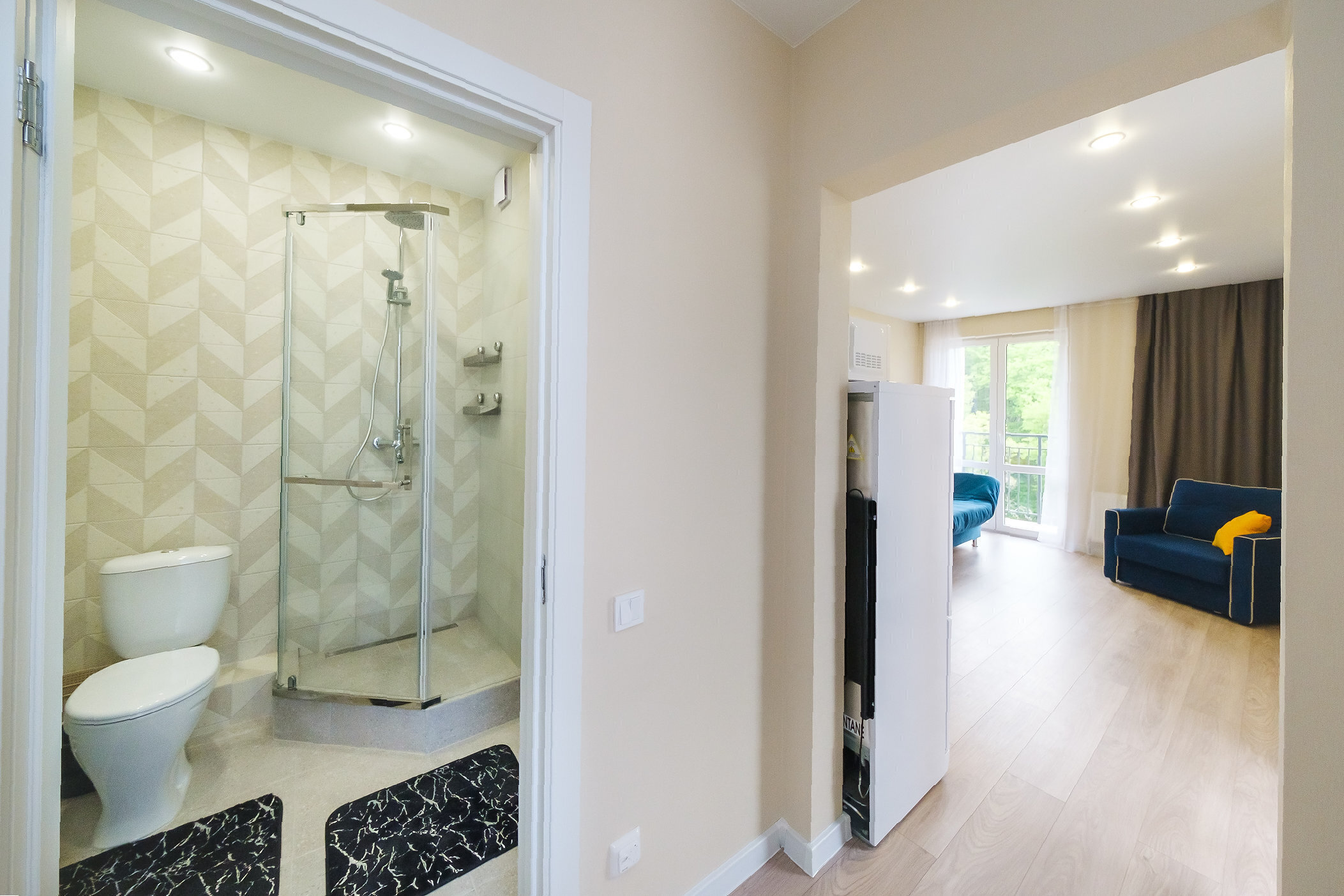 Добро пожаловать в нашу обновленную студию с двумя балконами, откуда открывается захватывающая панорама на морские просторы и Сочинский национальный парк!