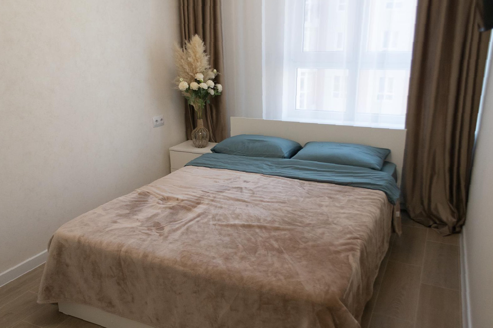 - Спальные места: одна двуспальная кровать (шириной 160-170 см) и один раскладной диван