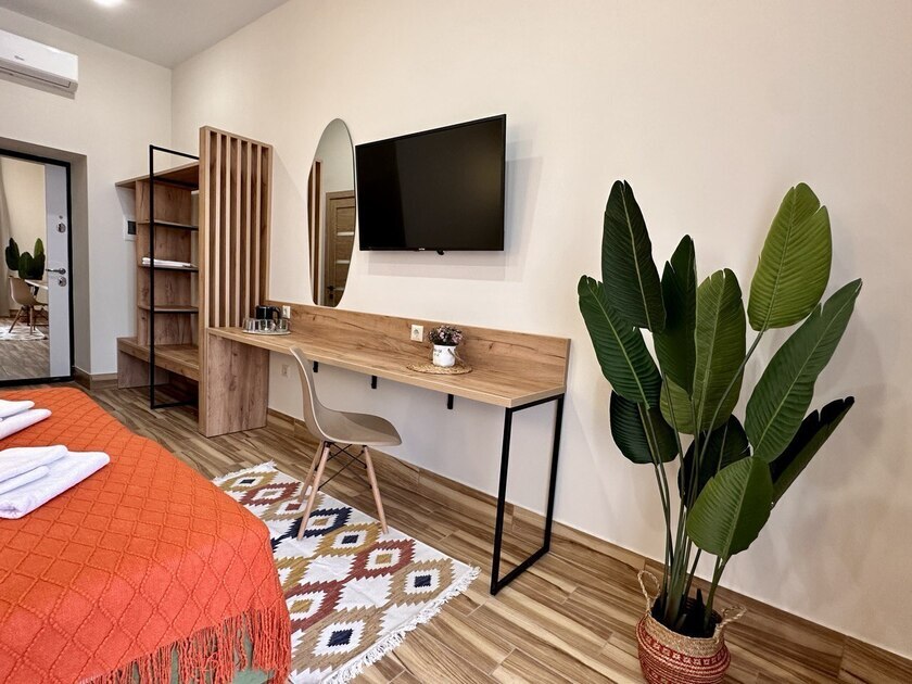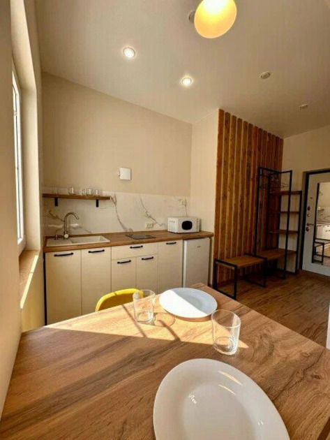 Уютная и комфортная студия с отельной спальней и кухней гостиной.