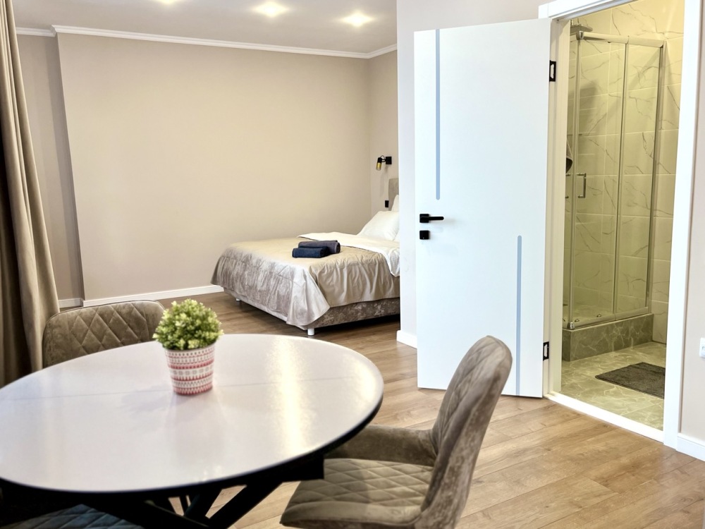 - Уютная обеденная зона с раскладным столом на 4 персоны - идеально для завтраков с видом на море.