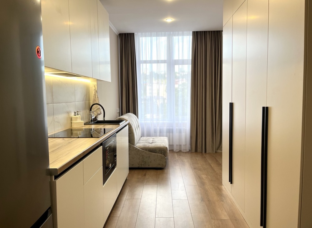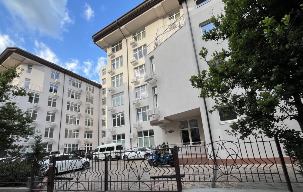 ЖК «Apт Ялтa», 4-й этaж, вид нa море и горы, до пляжa и набережной - 7 минут пeшкoм пo прямой.