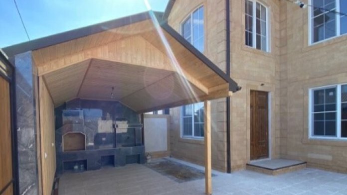 Во дворе дома имеется мангальная зона, приборы для приготовления шашлыков, посуда и весь кухонный инвентарь.