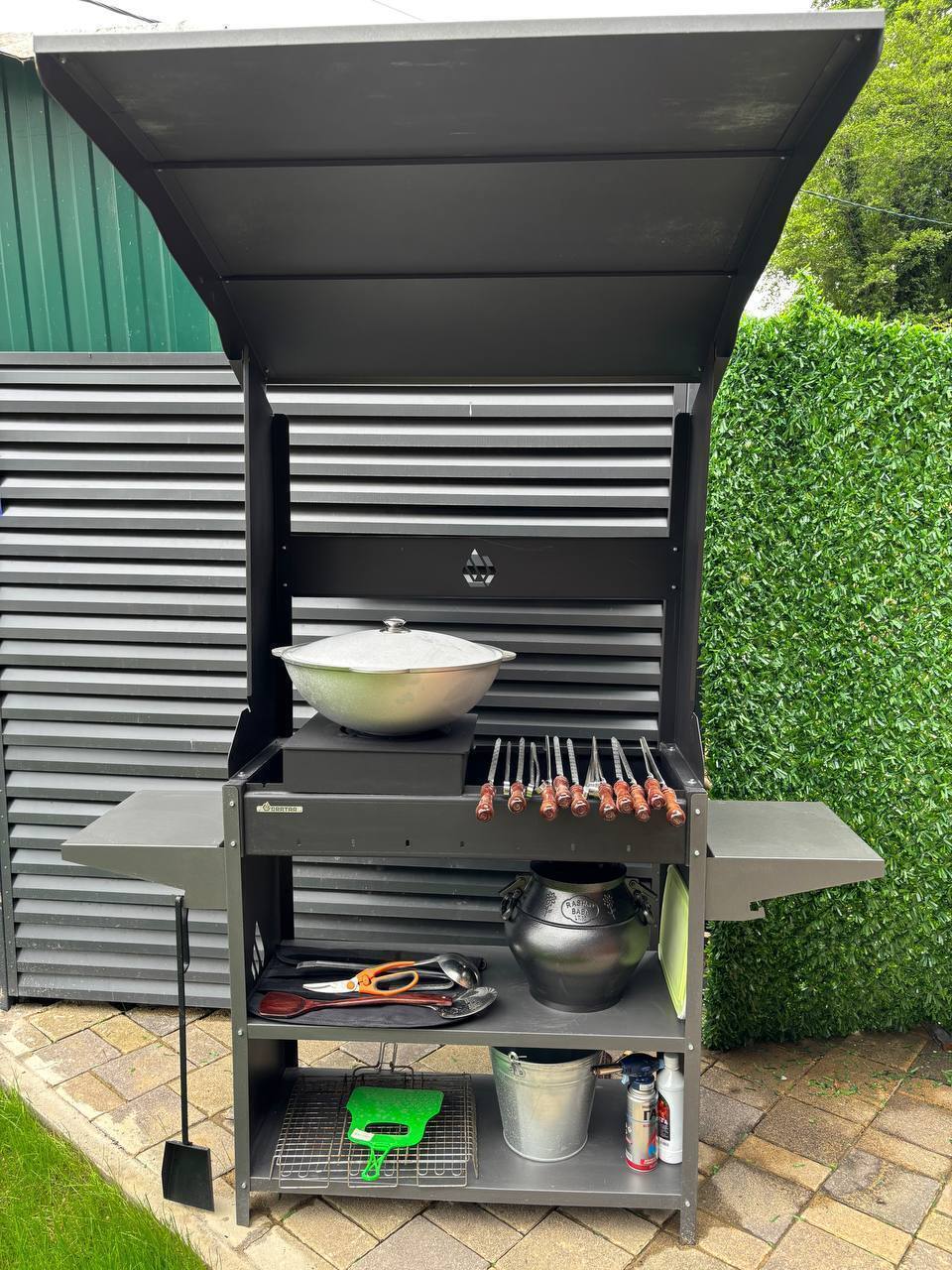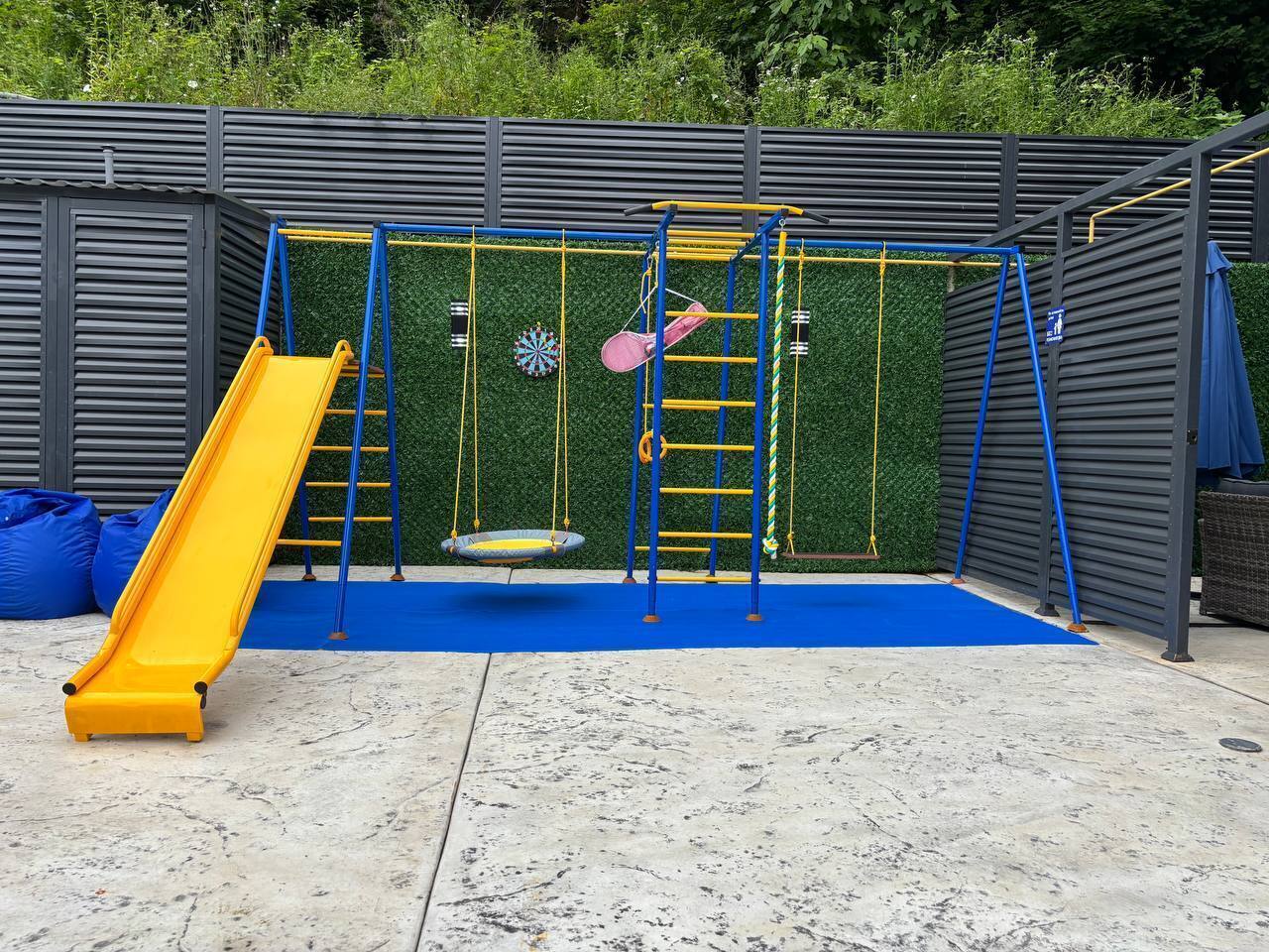 Зона отдыха- кальян, караоке- колонка, уличный проектор, бадминтон, дартс, качели, беседка.