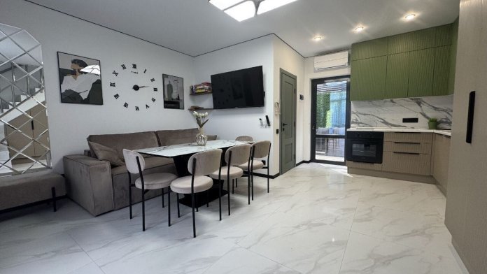 Таунхаус с дизайнерским ремонтом в Сочи. Наш комплекс подойдёт, как для спокойного, семейного отдыха, так и для активного отдыха с компанией друзей. Потрясающий горный воздух, красочные пейзажи, незабываемый колорит нашей местности это то, что заставит вернуться к нам снова. Аэропорт Сочи - 10 мин, Ж/д вокзал Адлер - 15 мин. Курорт Красная поляна - 30 мин, центр Сочи - 30 мин.