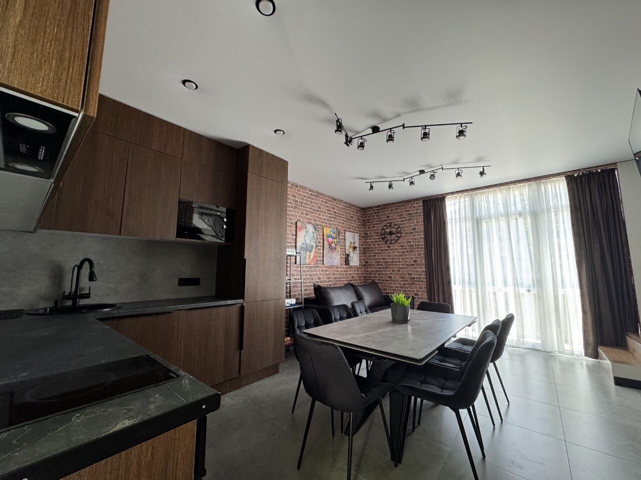 - пpocтopнaя куxня-гоcтинaя;