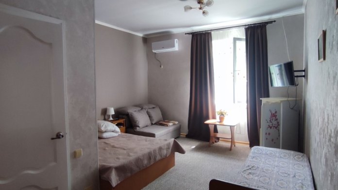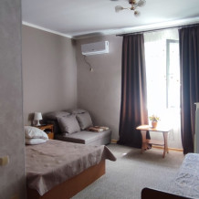 Для размещения гостям предлагают номера категорий: Стандарт и Студия. Все они оснащены телевизором, кондиционером, холодильником, феном и санузлом. Номера категории Студия имеют свою кухню.