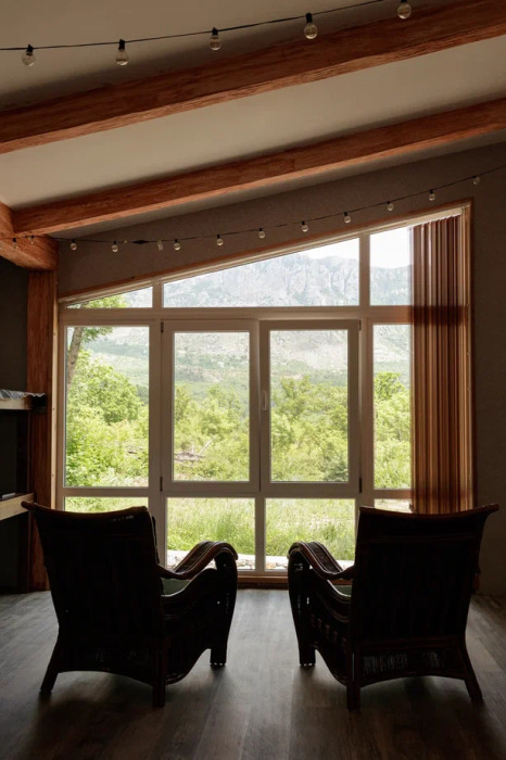 - Размещение в просторном домике с видом на горы