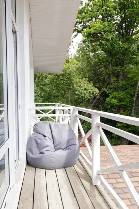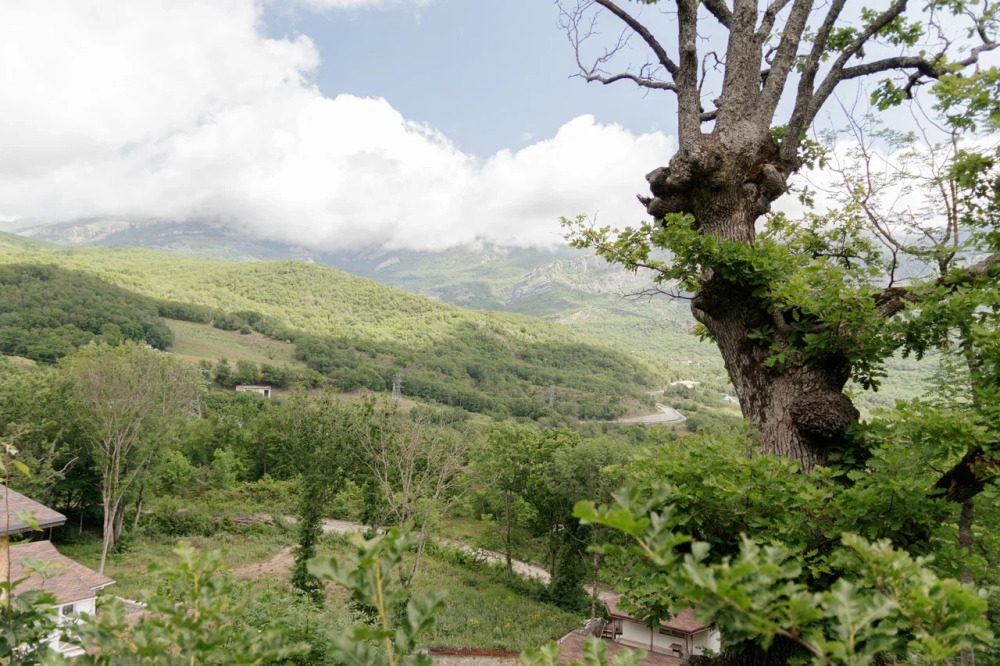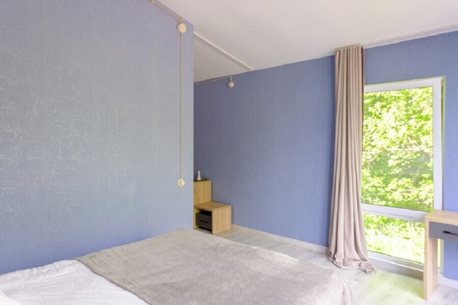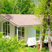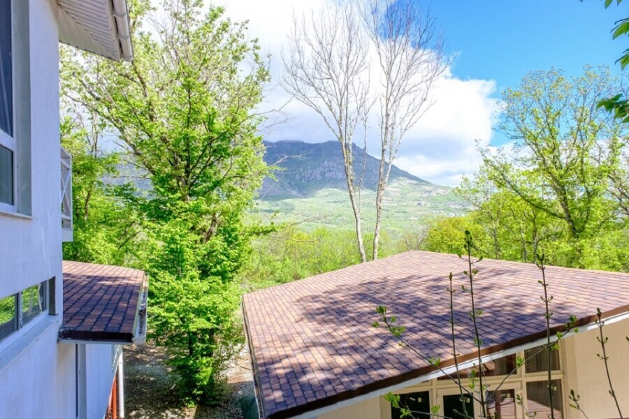 Общая площадь 40 м. В домике 2 комнаты. Просторная терраса с выходом в дубовый лес или балкон с видом на горы или лес.