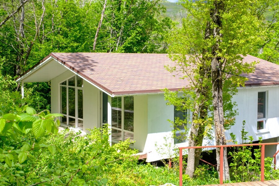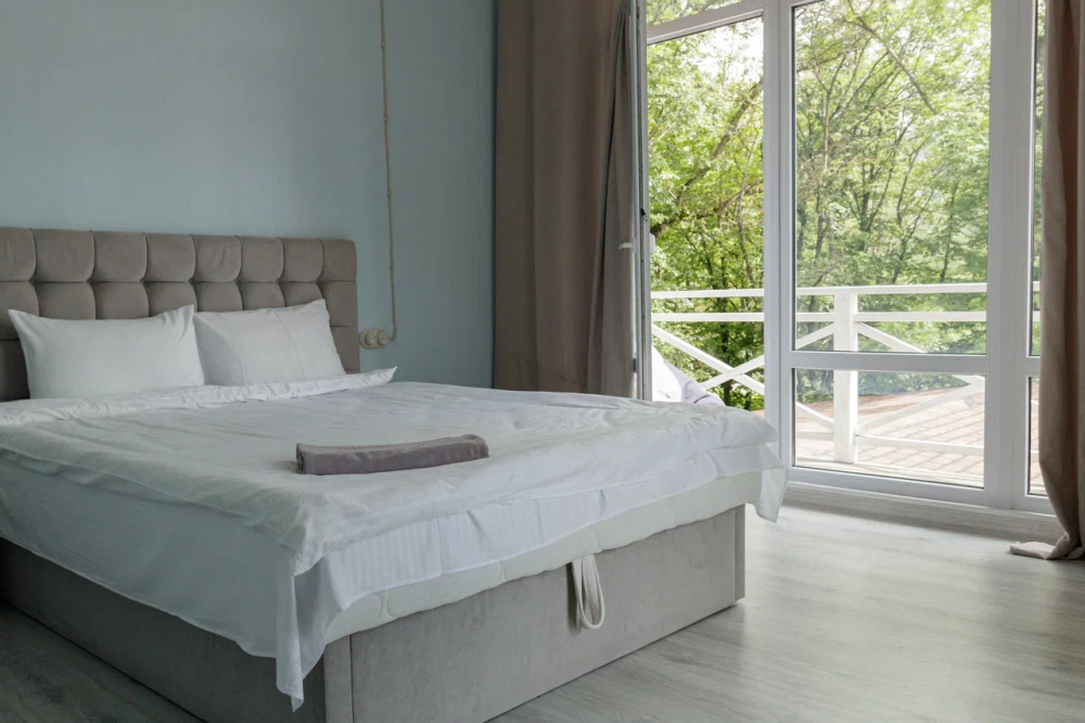 В домике имеется две комнаты. Просторная терраса с выходом в дубовый лес или балкон с панорамным видом на горы или лес.