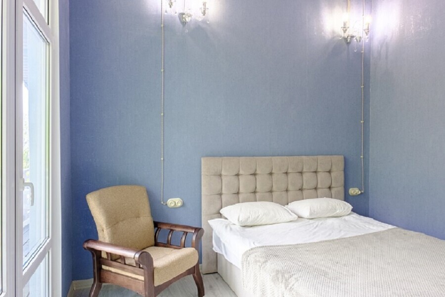В номере имеется две комнаты в каждой из которых двуспальная кровать. Вторая комната является проходной. Первая комната с выходом на балкон, двуспальная кровать 160х200 см, кресло, прикроватная тумба и столик с выдвижными ящиками. Вторая комната с окно, двуспальная кровать 145х210 см, диван, столик с выдвижными ящиками. В номере отдельный санузел и вместительный шкаф с зеркалом в полный рост. Ванная комната оснащена душем. Фен в каждом номере. 3х разовое питание, Походы в места силы, Психолог, Нутрициолог, Тренер