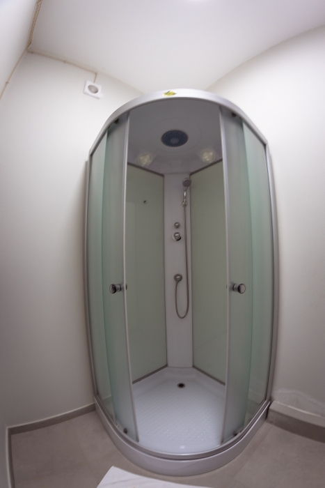 Спальня оснащена двуспальной кроватью 160х200 см, креслом, прикроватной тумбой и столиком с выдвижными ящиками. Во второй комнате - двуспальная кровать 140х200, окно в видом на дубовый лес, столик, диван и телевизор 52 дюйма. В номере большой шкаф с зеркалом в полный рост. Ванная комната оснащена душем. Фен. Махровые халаты.