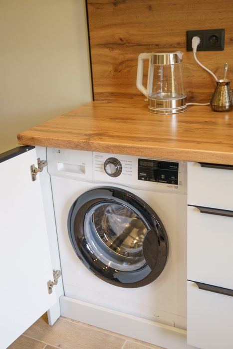 Двуспальная кровать, диван, Smart TV телевизор, Wi-Fi, полностью оборудованная кухня: плита, чайник, холодильник, вся необходимая посуда и принадлежности. Стиральная машина, утюг, фен. Чистое постельное бельё.