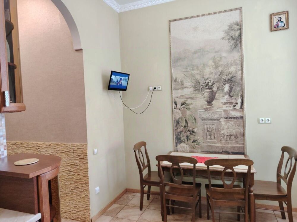 Просторная кухня 17 м. Потолки высотой 3,5 м.