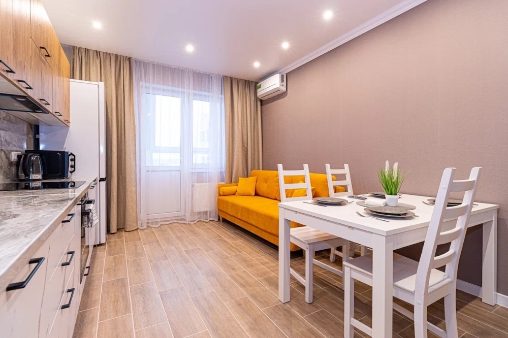 Уютная домашняя обстановка, полностью оборудованные кухня, ванная и спальня.