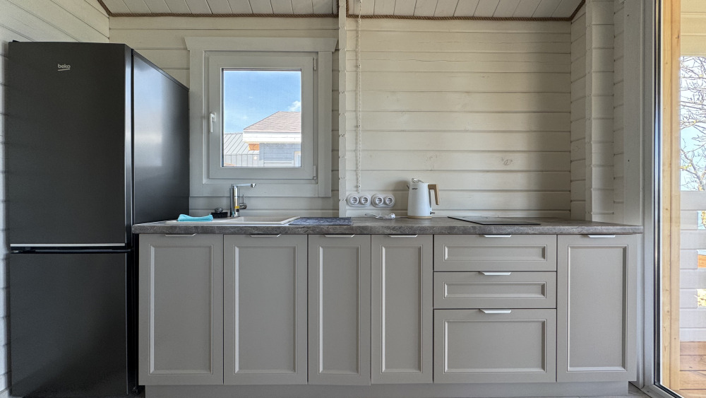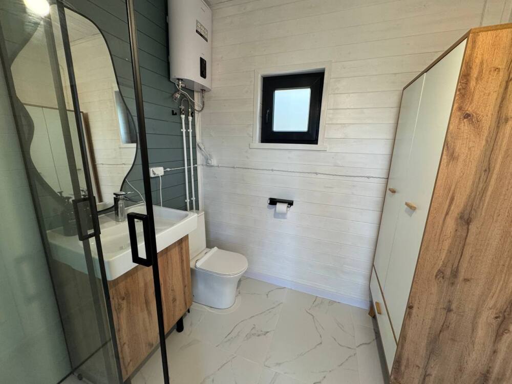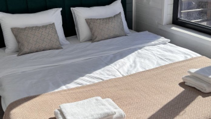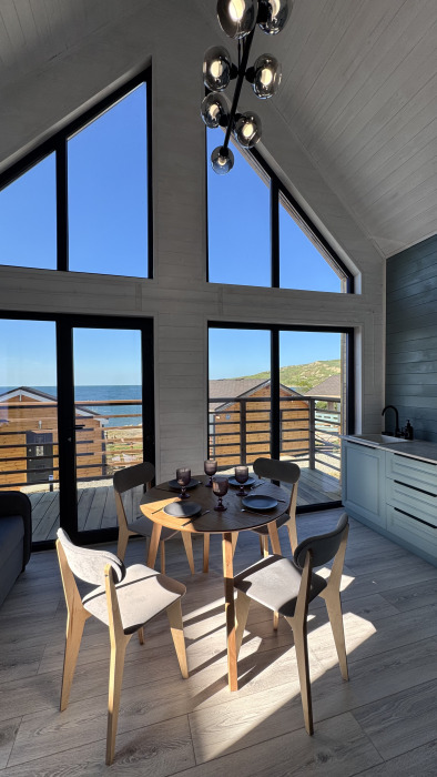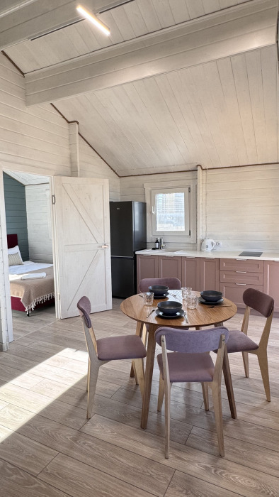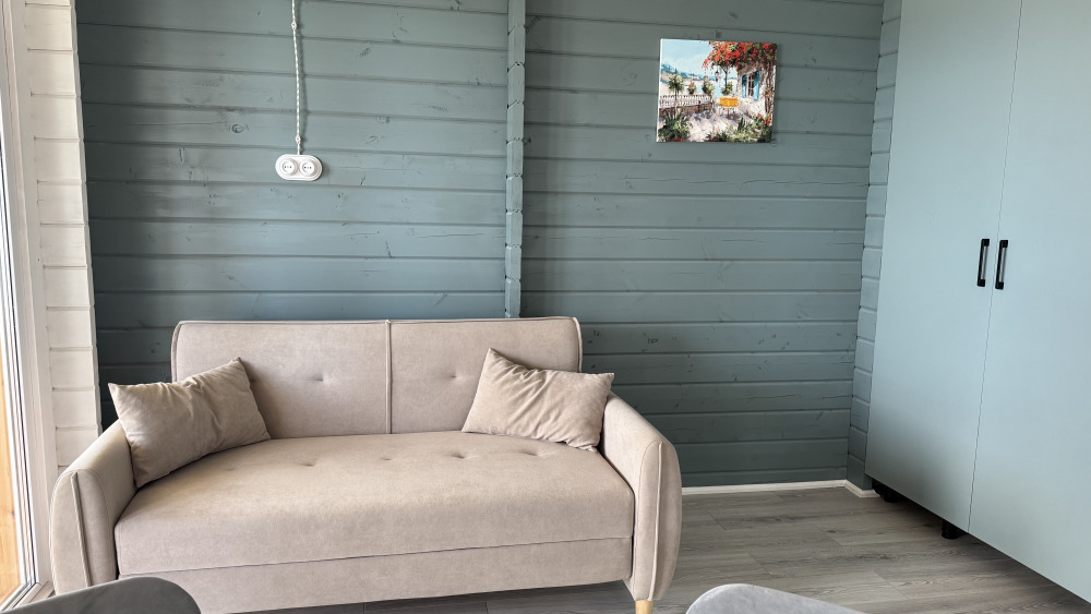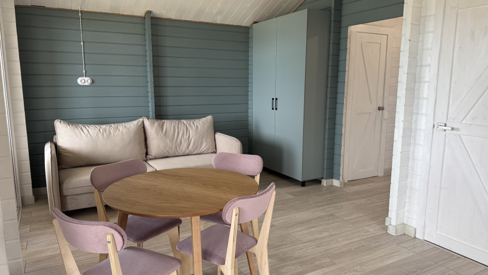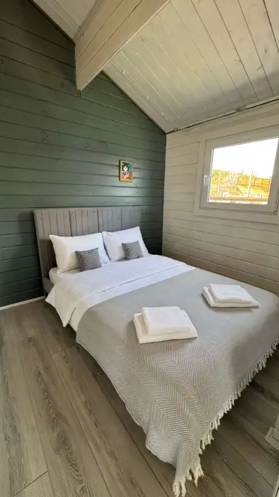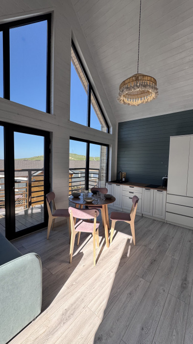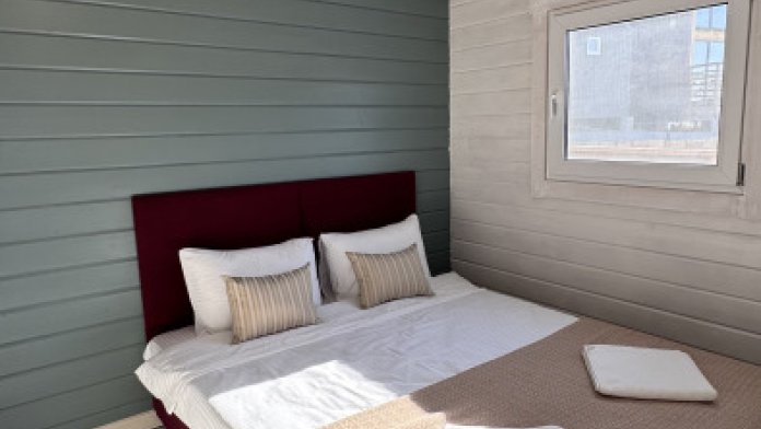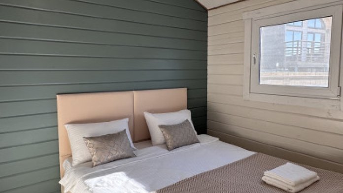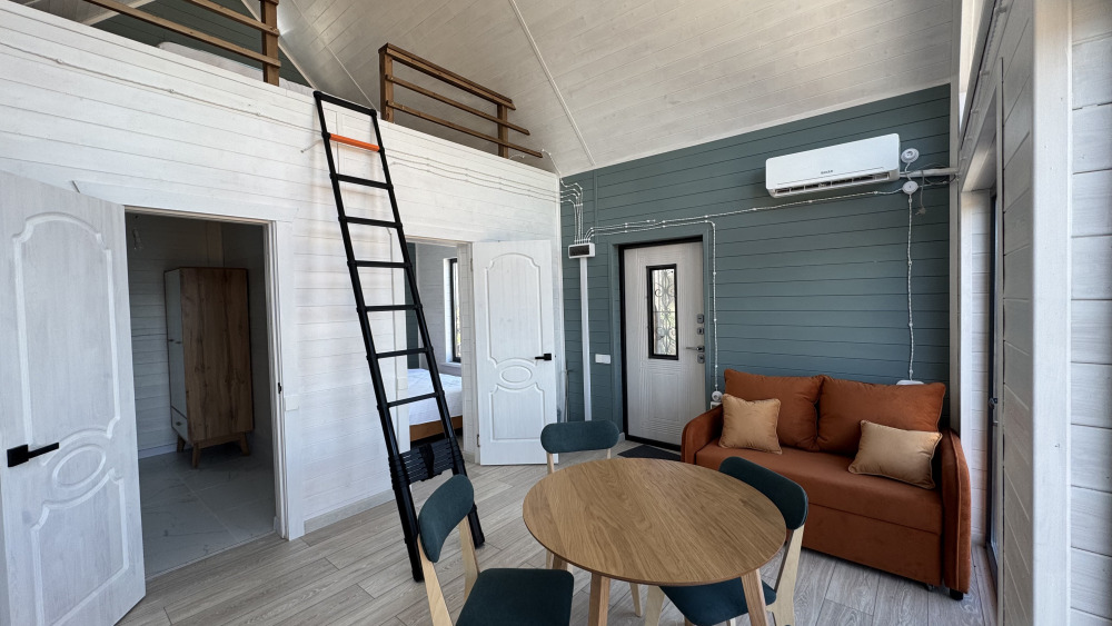 Современный дизайн, натуральное дерево и минимализм - интерьер напоминает, что Вы находитесь наедине с природой. Внутри расположена отдельная спальня, кухня-гостиная, душевая комната и собственная терраса с видом на море. Вместимость коттеджа до 4 человек: 2 основных спальных места на кровати и 2 дополнительных на большом двуспальном диване. Полная комплектация коттеджа сделает Ваш отдых комфортным: необходимая мебель, бытовая техника, посуда и кухонные приборы, а также комплекты белоснежных полотенец, халатов и косметических принадлежностей для каждого гостя.