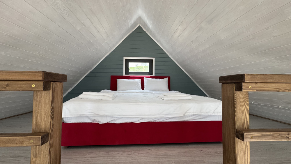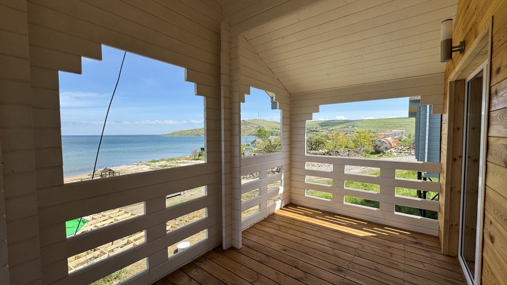 Коттедж выполнен из натурального дерева в сочных ягодных оттенках, внутри расположена отдельная спальня, кухня-гостиная и душевая комната, а с собственной террасы открывается потрясающий вид на море.