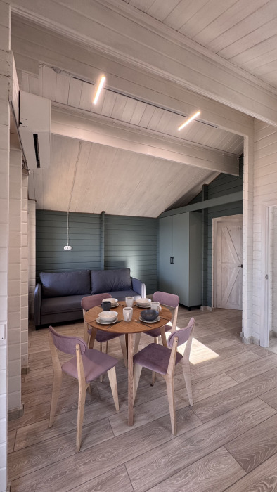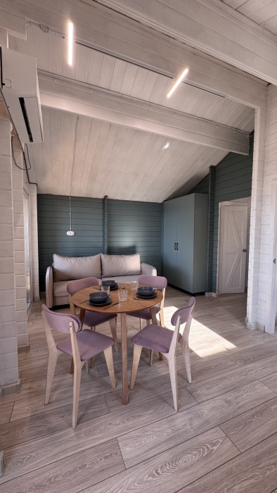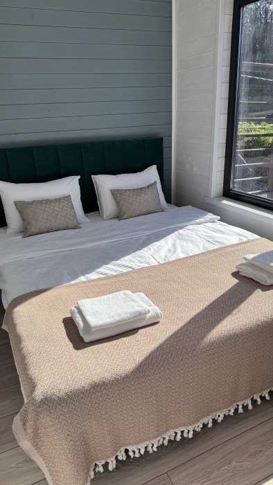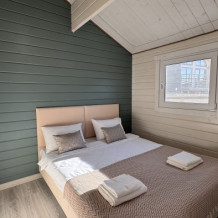 Все коттеджи оснащены современной мебелью и техникой, теплыми полами, сплит системами, в кухне вся необходимая посуда, а в спальнях - комфортные кровати с ортопедическими матрасами и белоснежным постельным бельём, мягкими полотенцами и халатами для наших гостей.