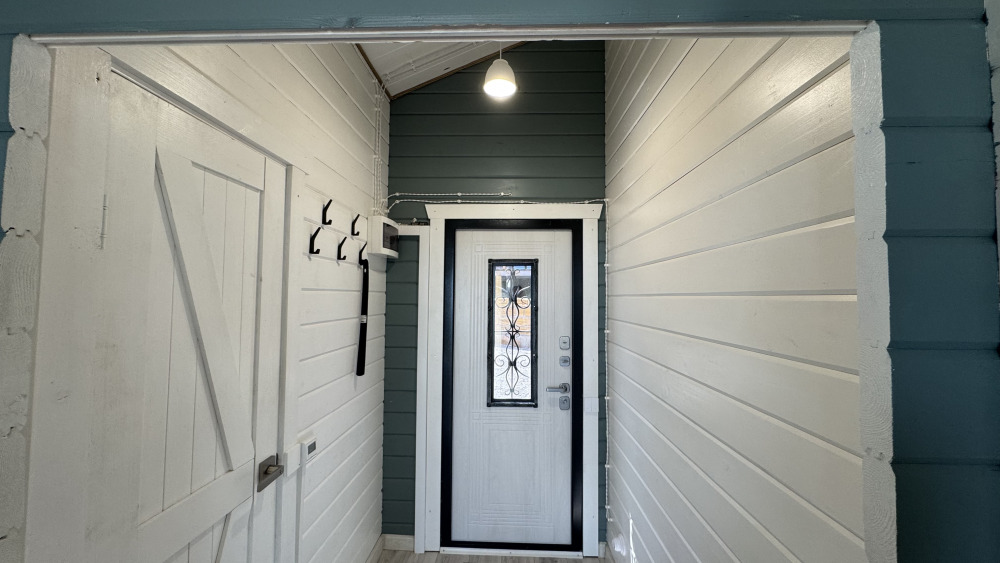Светлый двухэтажный коттедж выполнен из натурального дерева в приглушенных природных оттенках с отдельной спальней на 1 этаже, спальней со вторым светом на 2 этаже, кухней-гостиной, душевой комнатой и террасой.