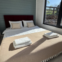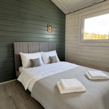 Вместимость коттеджа до 4 человек: 2 основных спальных места на кровати и 2 дополнительных на большом двуспальном диване. Полная комплектация коттеджа сделает Ваш отдых комфортным: необходимая мебель, бытовая техника, посуда и кухонные приборы, а также комплекты белоснежных полотенец, халатов и косметических принадлежностей для каждого гостя.