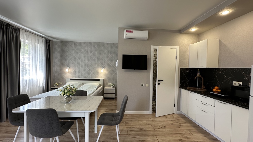 Расположение апартаментов просто идеальное – всего лишь 1.4 км до пляжа, также прекрасная инфраструктура для лайт-активации вашего отдыха. Идеальный выбор для тех, кто ищет уединения и наслаждения природой без суеты большого города.