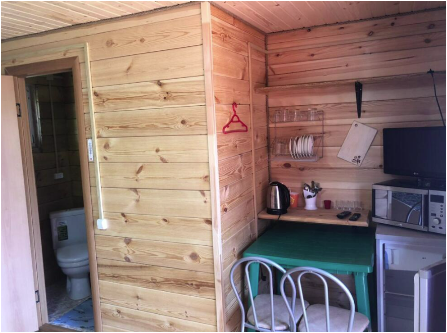 Один из корпусов на четыре 5-местных номера с раздельными спальными местами расположен на территории, где есть столовая, в этом корпусе нет кухонных зон.