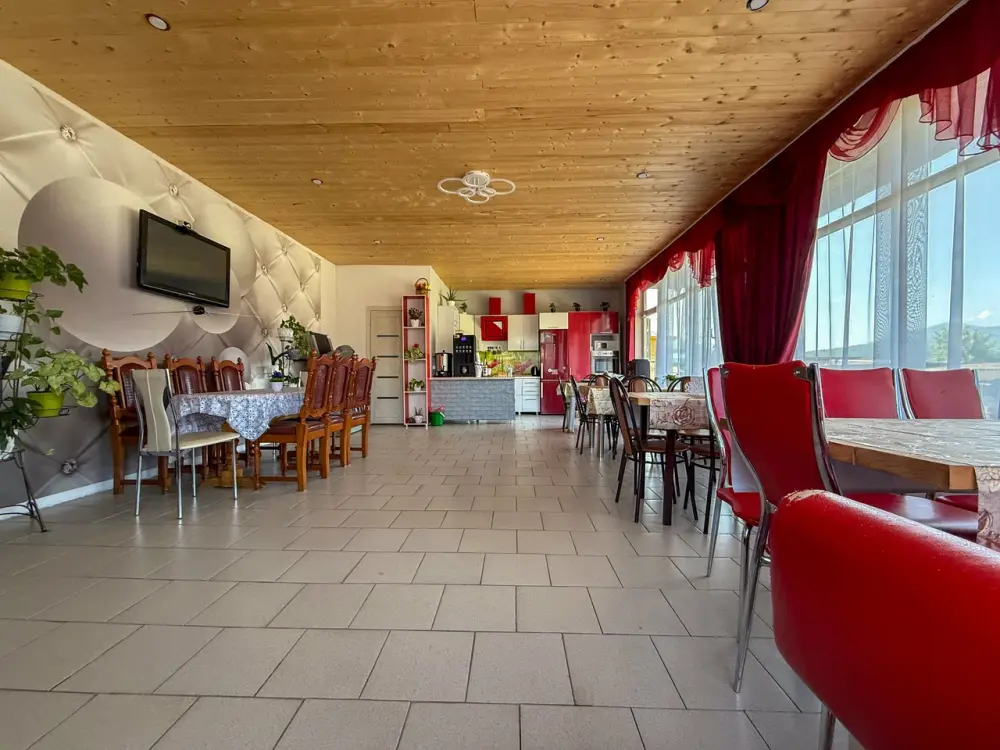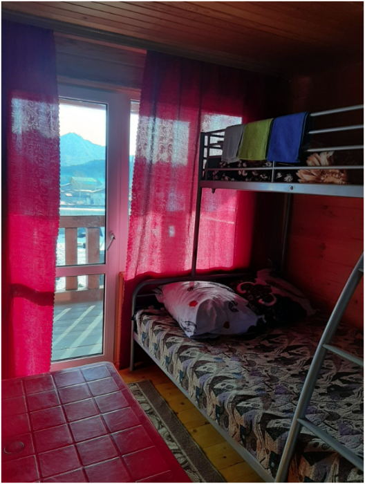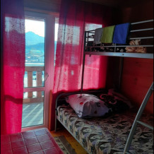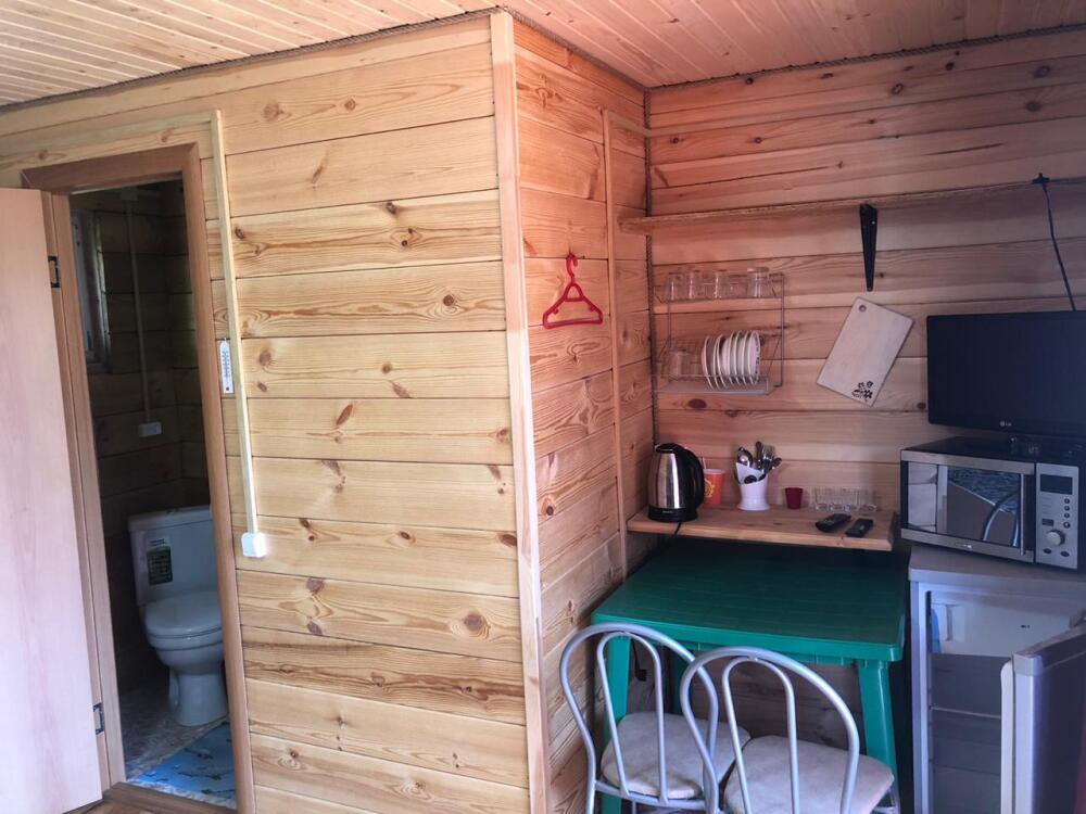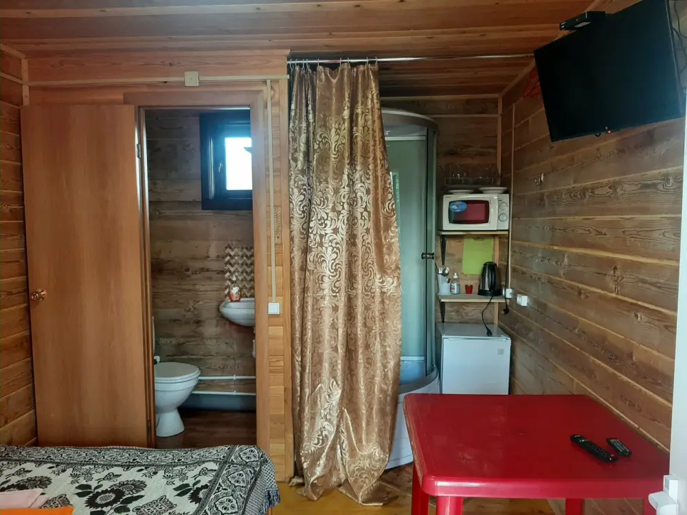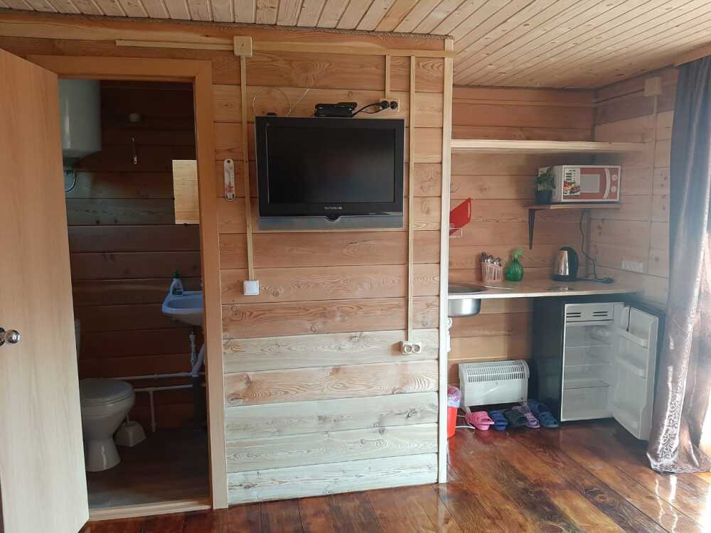 В 3-х корпусах благоустроенные номера с полной комплектацией: туалет, душ, кухонная зона со всеми принадлежностями, холодильники, телевизоры, чайники, свч. Вид из окна изо всех номеров - на горы.