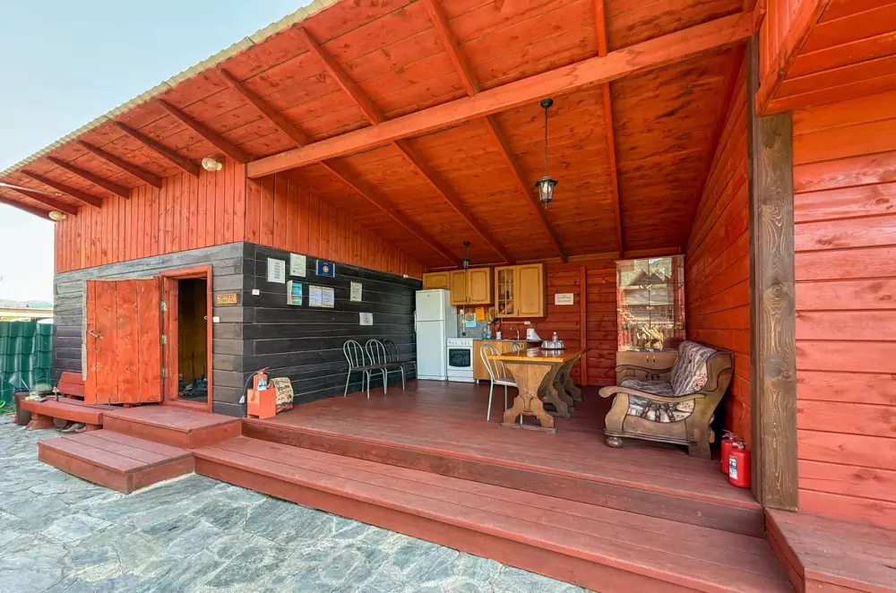 Отель расположился посреди ущелья, до реки Катунь - царицы Горного Алтая - 300 метров. В пятнадцати минутах ходьбы – остров Патмос, где возведен православный храм Иоанна Богослова. Неподалеку находится Чемальская ГЭС - памятник советской эпохи. А какая неописуемая природа: сосновый бор Бешпек, Каракольские озера, водопад Бельтыр туюк, петроглифы, голубые озера, Ороктойский мост. Можно долго перечислять. А какой воздух, какая вода - это заряд здоровья и энергии на целый год.