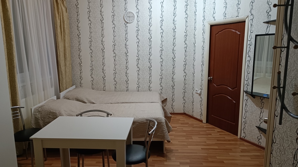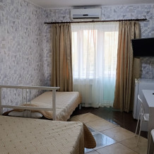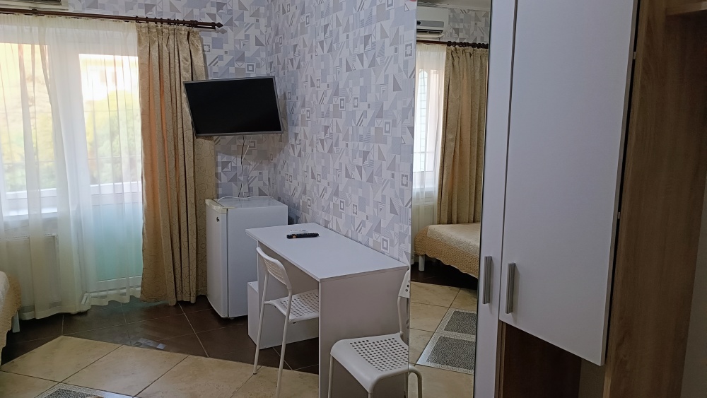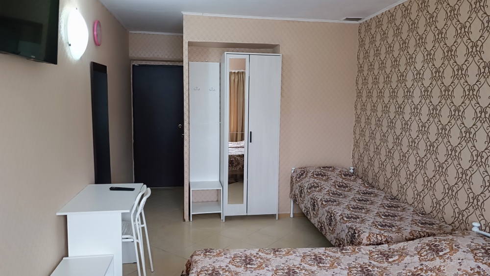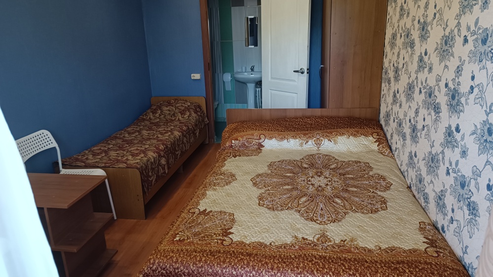 У нас есть номера разной вместимости, со всеми удобствами. На первом этаже есть общая кухня, со всем необходимым для самостоятельного приготовления пищи.