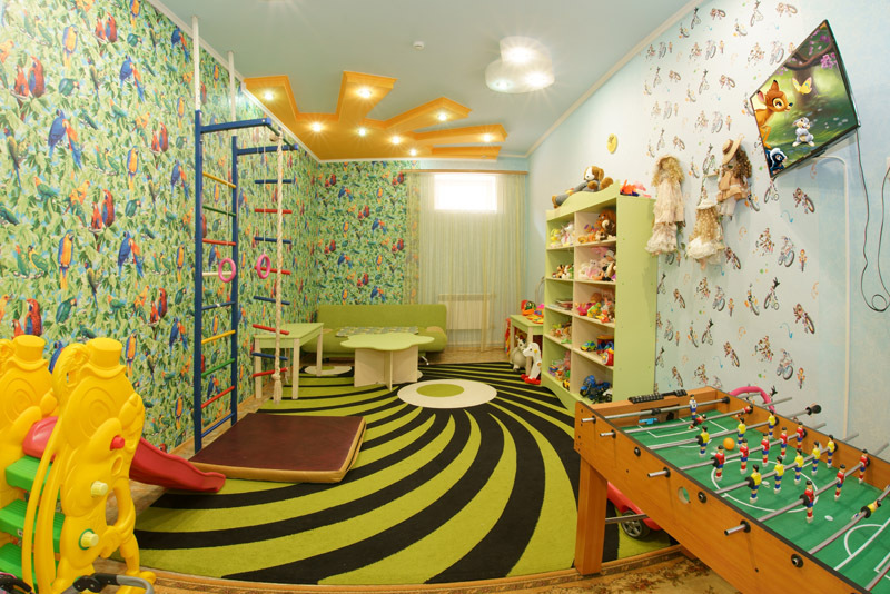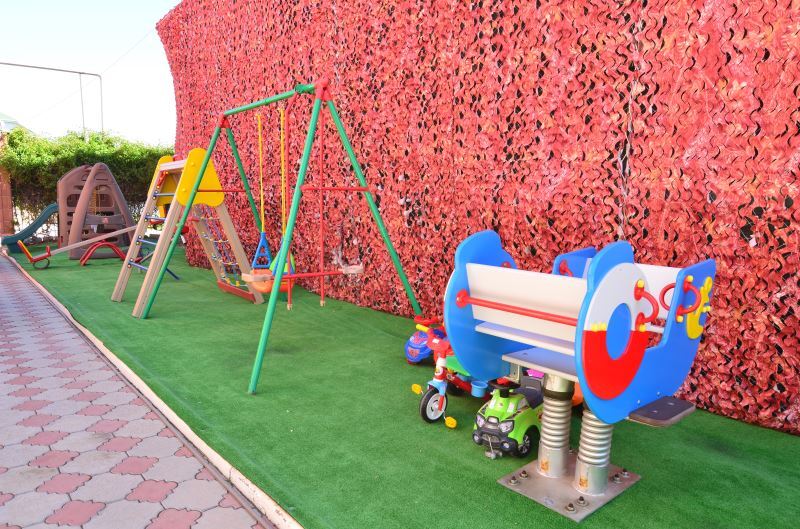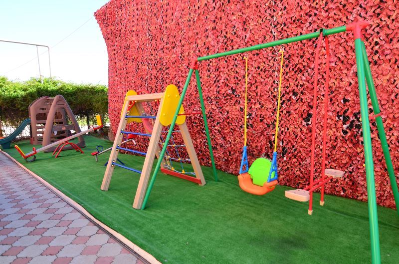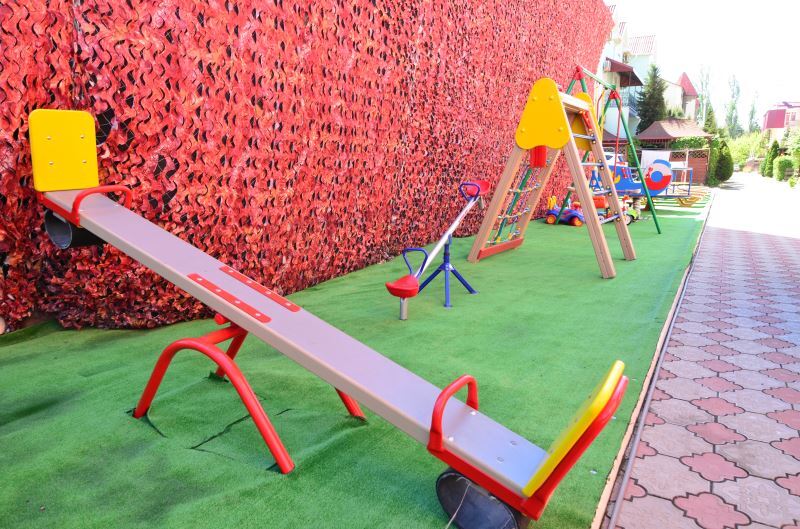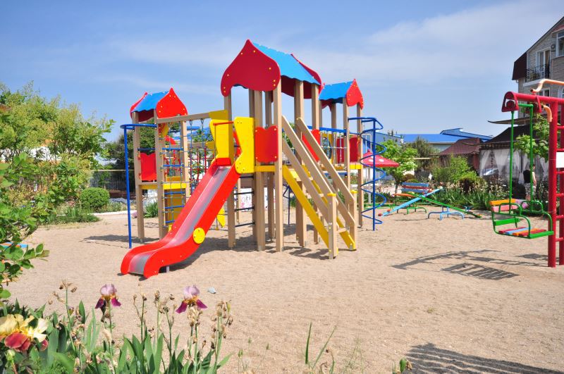 Собственная детская площадка. На территории коттеджа обустроена игровая зона с качелями и горками.