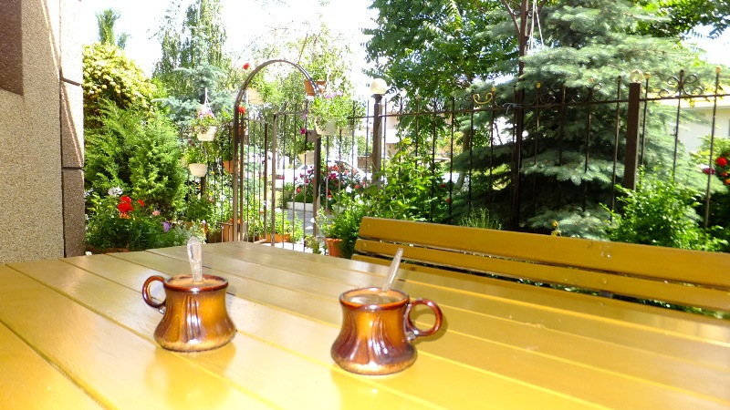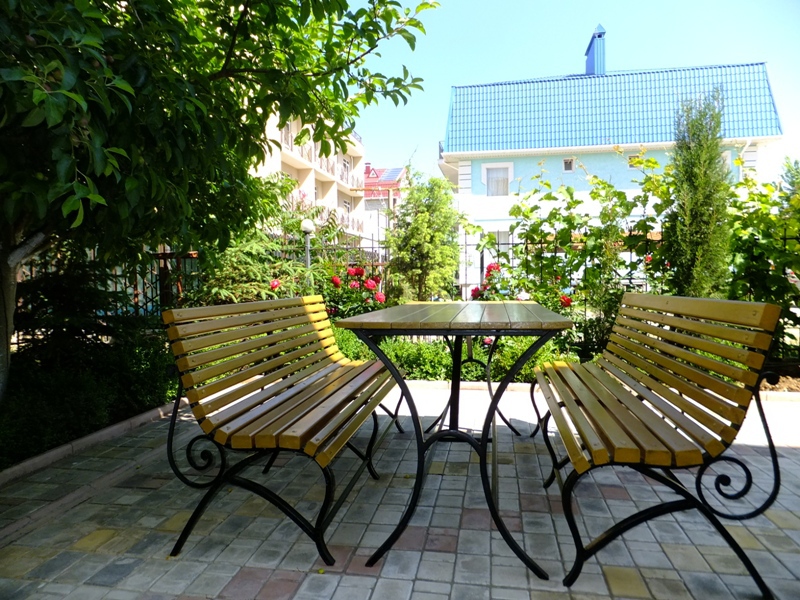 На балконах каждого этажа и в уютном дворике много красивых ухоженных роз, других цветов, зелени, установлены столы и скамейки, за которыми Вы можете приятно проводить свой досуг.