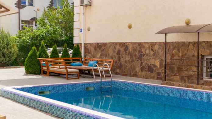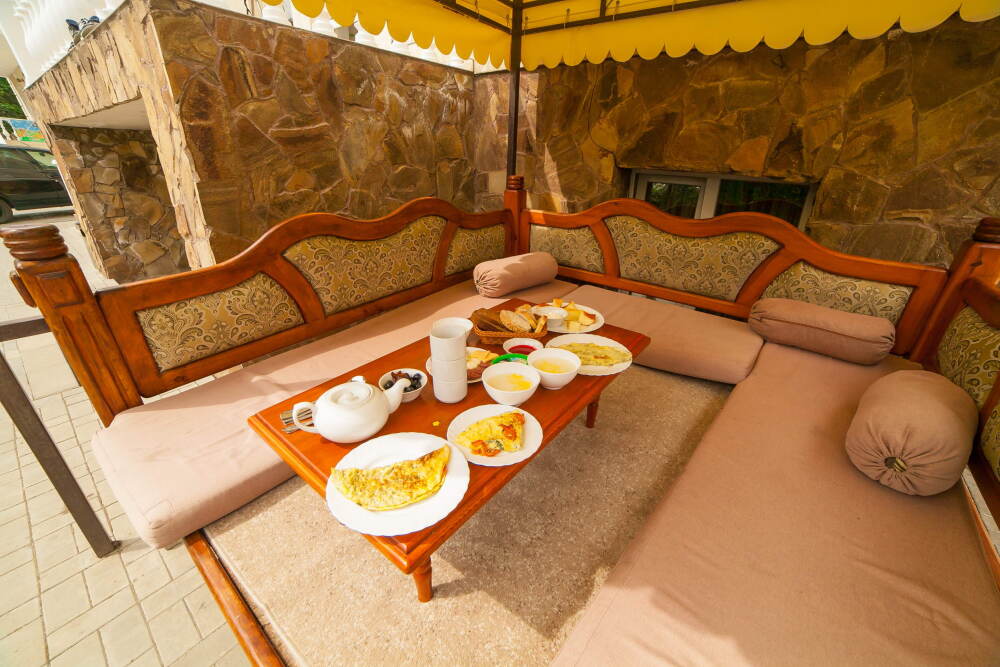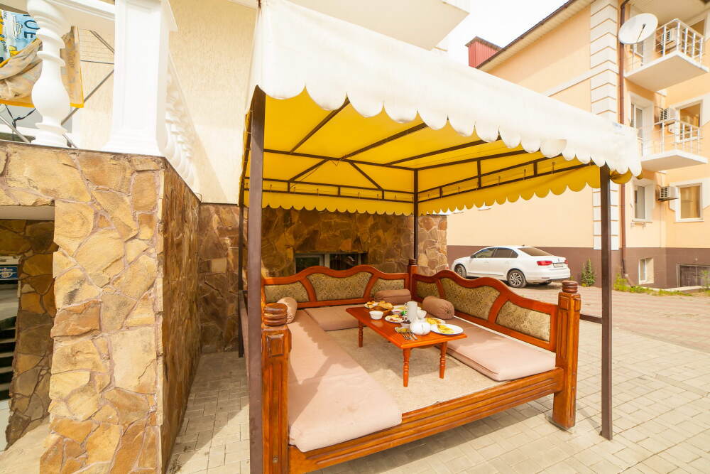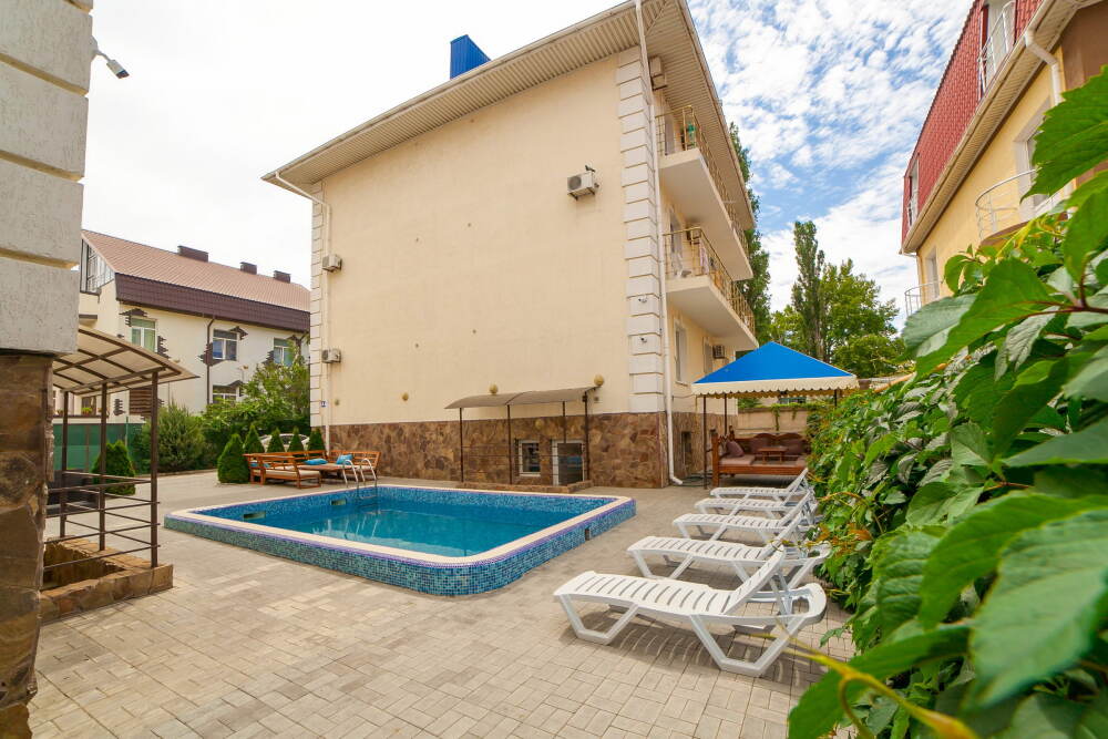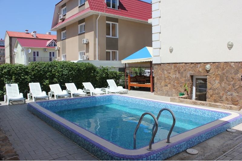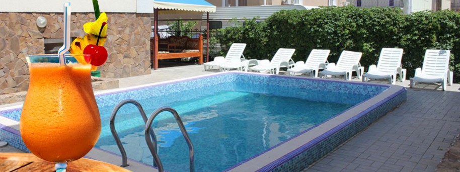 Также к услугам наших гостей прекрасный плавательный бассейн размером 7 на 4 метра. Возле здания мини-отеля имеются беседки, выполненные в восточном стиле, где можно спрятаться от солнца в знойный день или уютно посидеть вечером за бокалом крымского вина. Для тех, кто путешествует на автомобиле, имеется бесплатная стоянка возле здания отеля и платная охраняемая парковка. «Жемчужина» прекрасно сочетает в себе качественный сервис с доступными ценами на отдых.