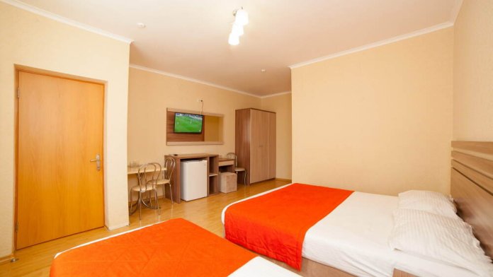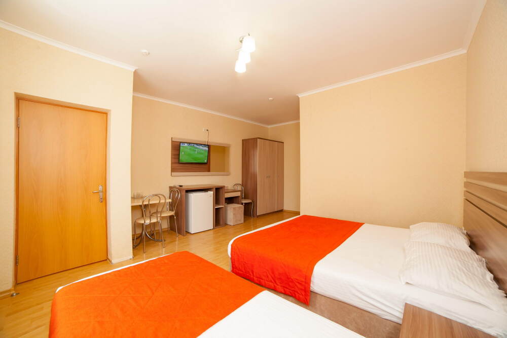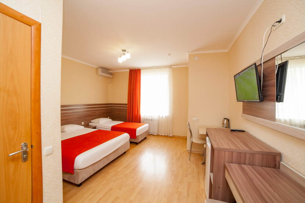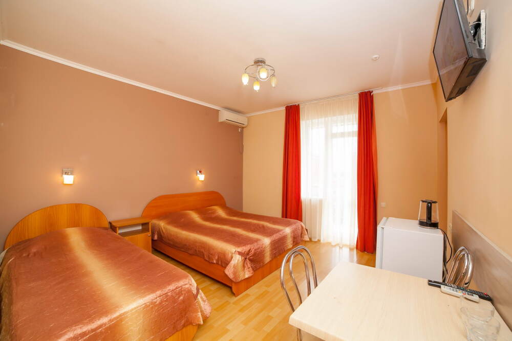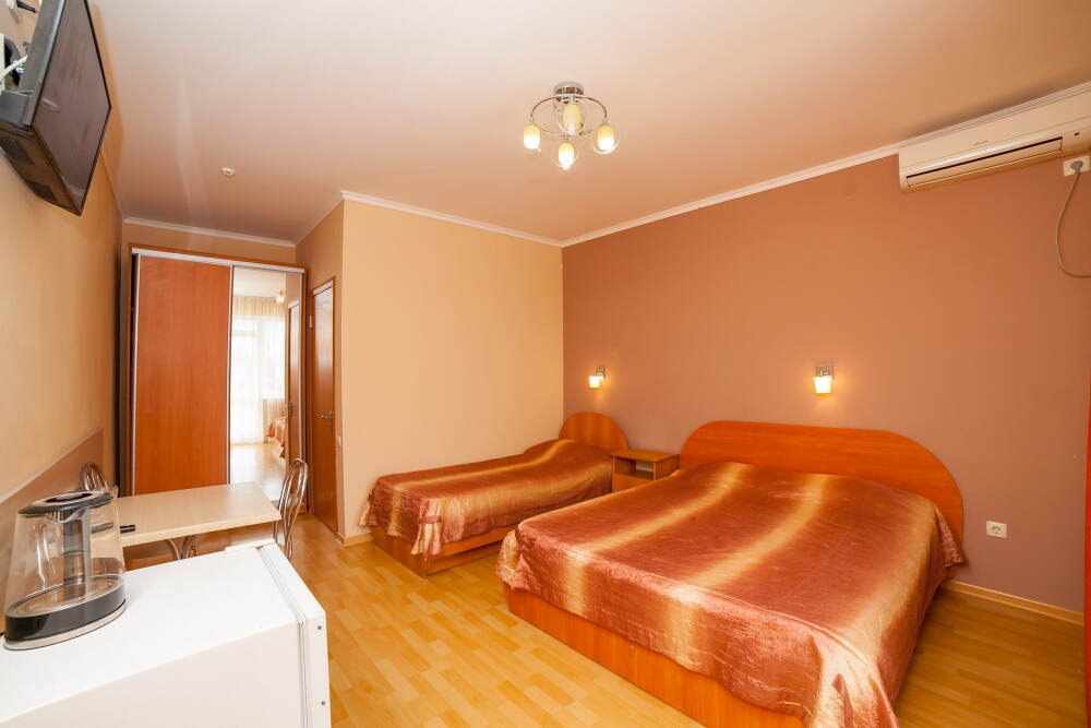 в номере двуспальная и односпальная кровать, телевизор, холодильник, кондиционер, сейф. Удобства в номере. Ежедневная уборка. WiFi