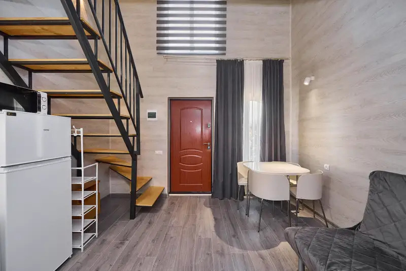 Комфортабельный, современный и уютный двухэтажный номер с собственной кухней, стиральной машиной, санузлом и отдельным входом. Идеальное решение для тех, кто ценит приватность и удобство во время отдыха. Здесь вы найдете все для спокойного отдыха.