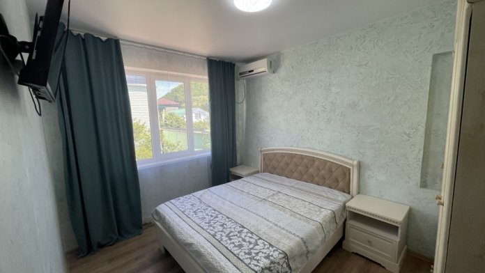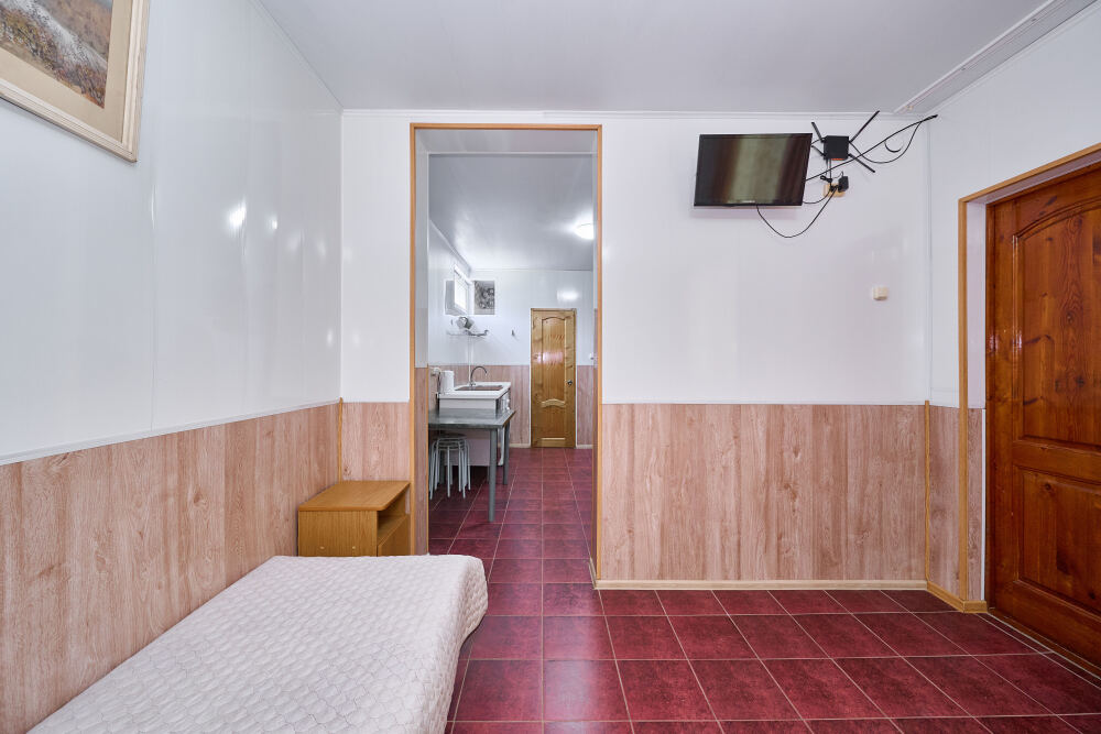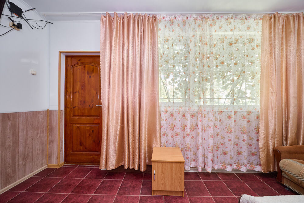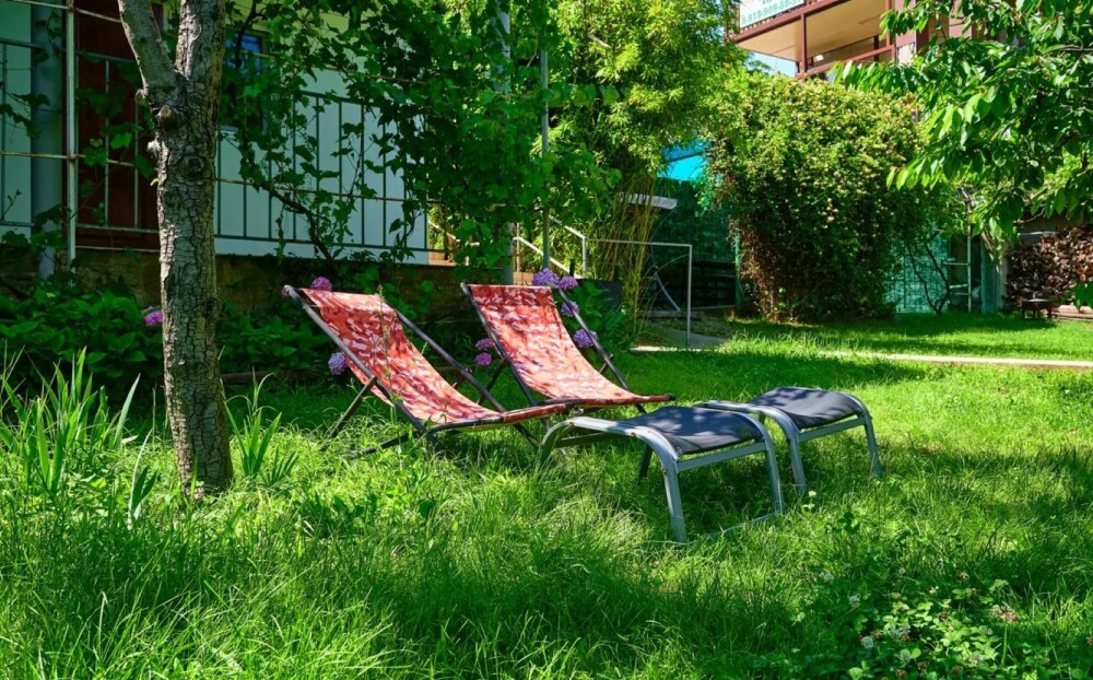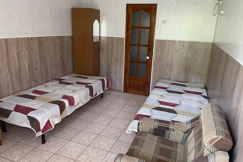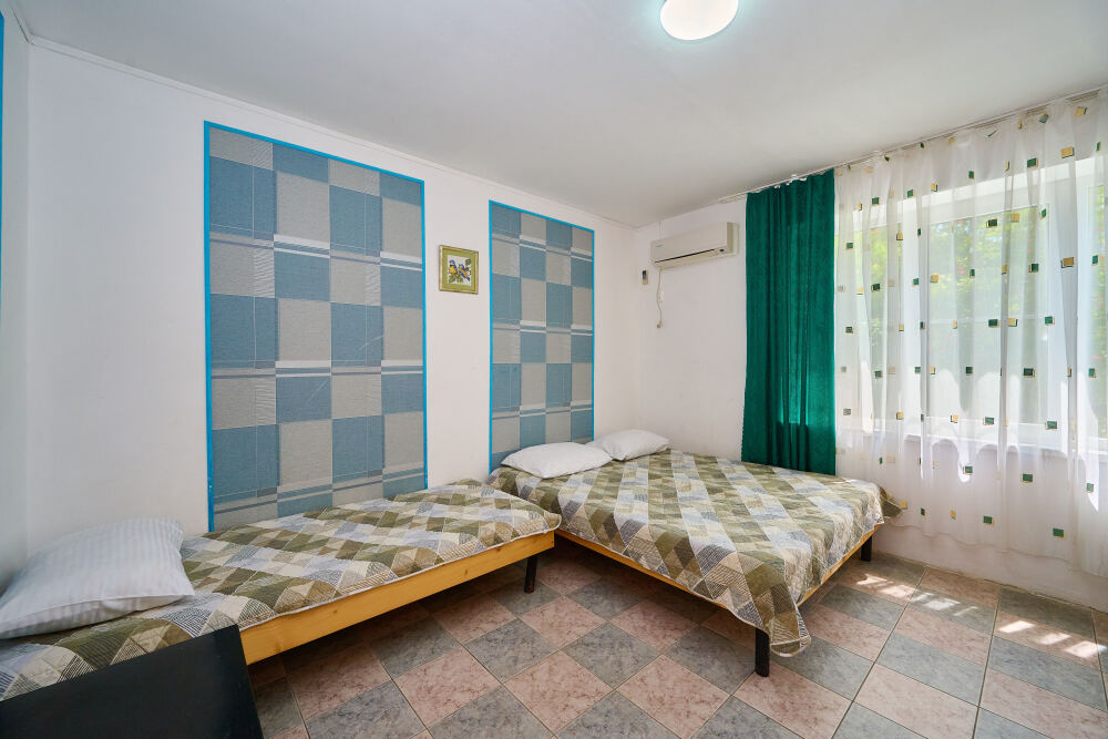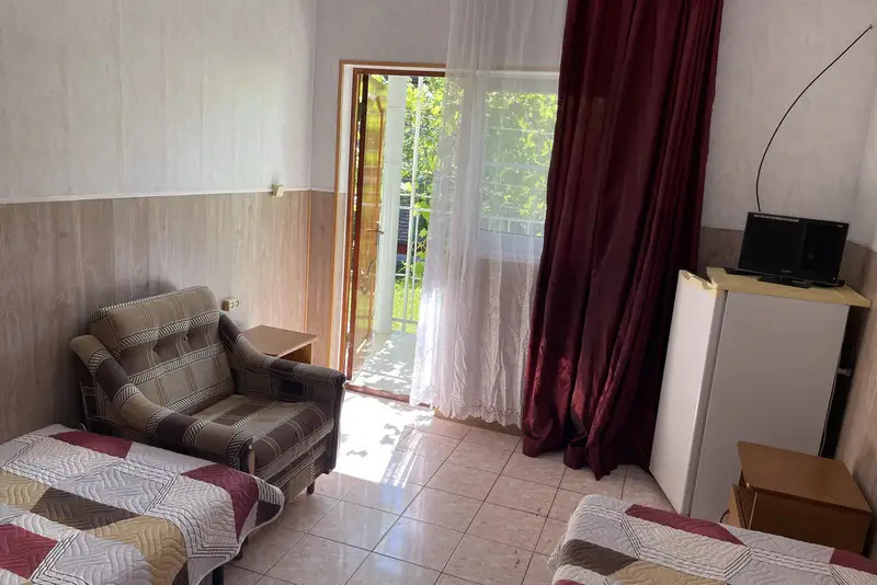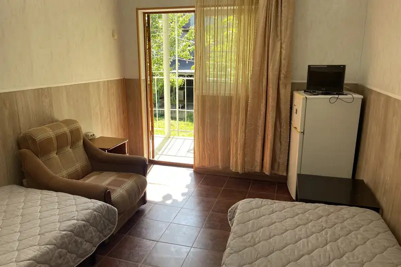 Двухместный номер с раздельными кроватями расположен на 1 этаже, в отдельно стоящем здании. Приятным бонусом будет доп место для гостя или ребенка. Выход на веранду, обвитую киви и виноградом, создает особую южную атмосферу.