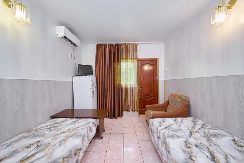 Добро пожаловать в двухместный номер с двумя раздельными кроватями, оборудованный всем необходимым для комфортного отдыха (телевизор, санузел, холодильник, кондиционер).