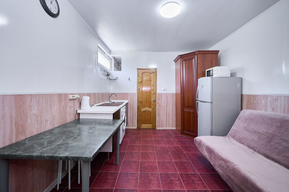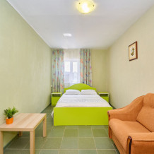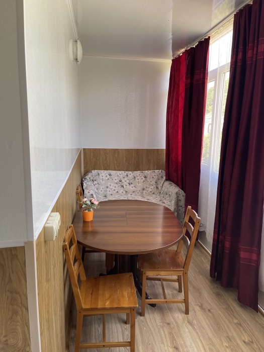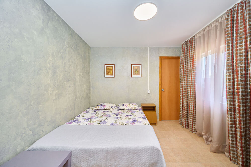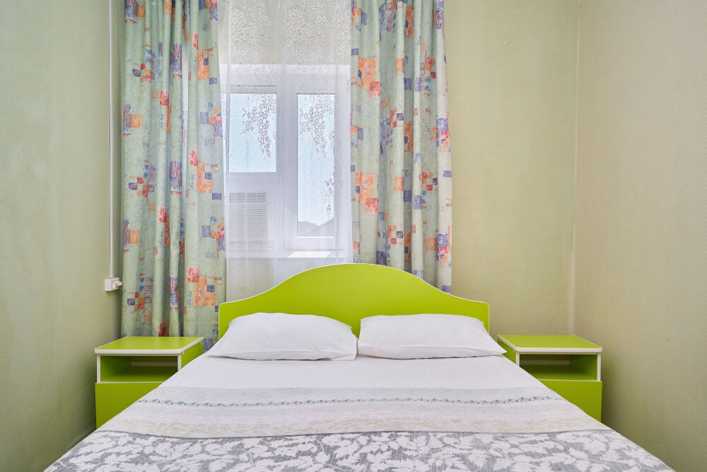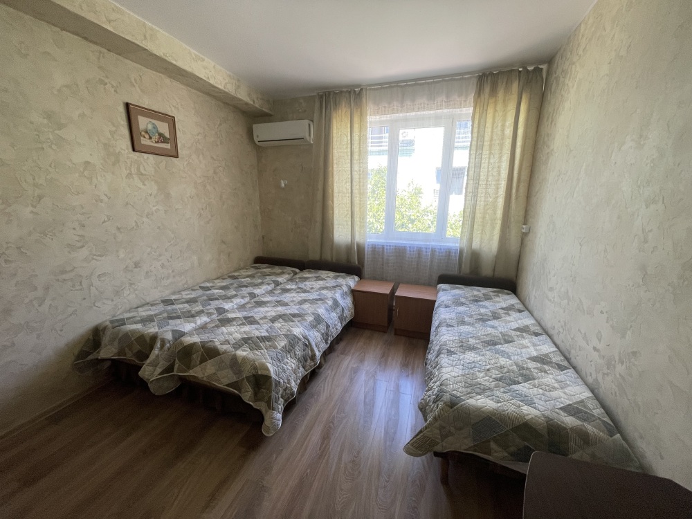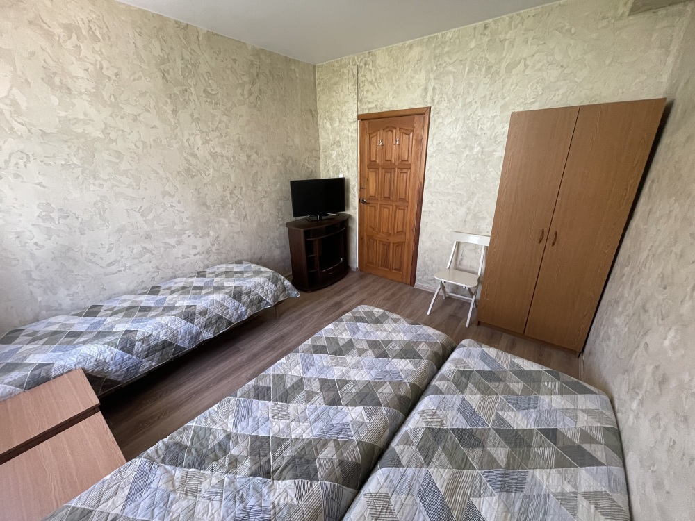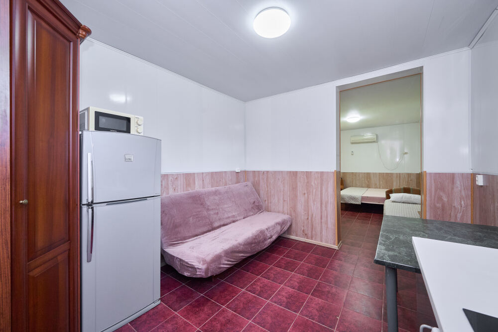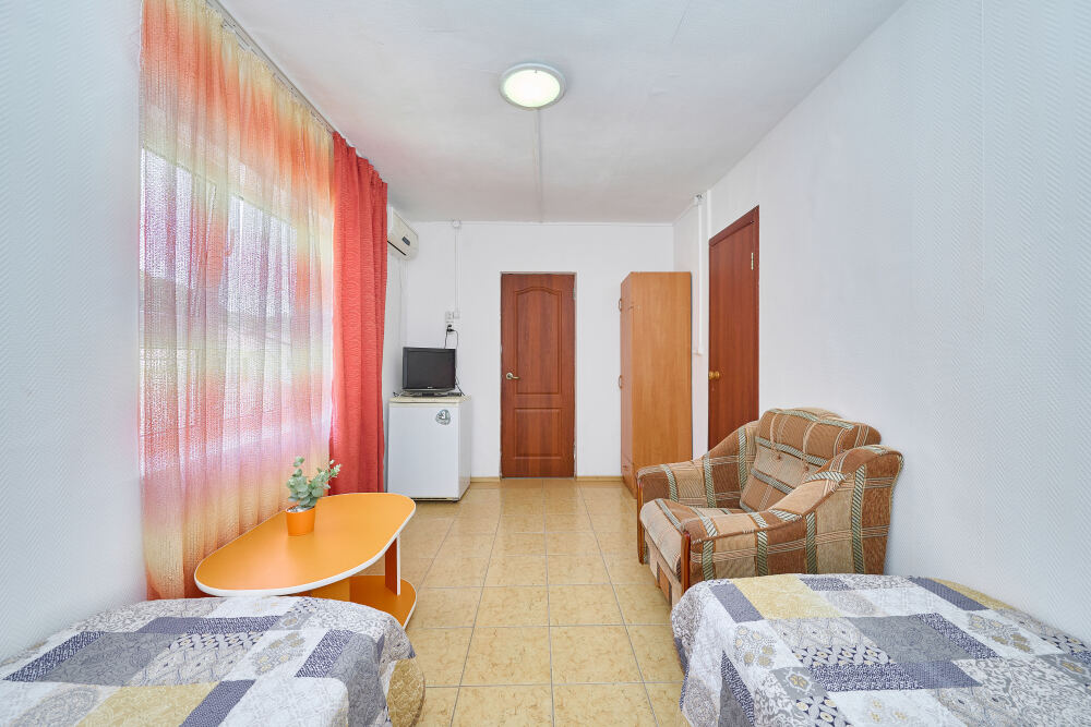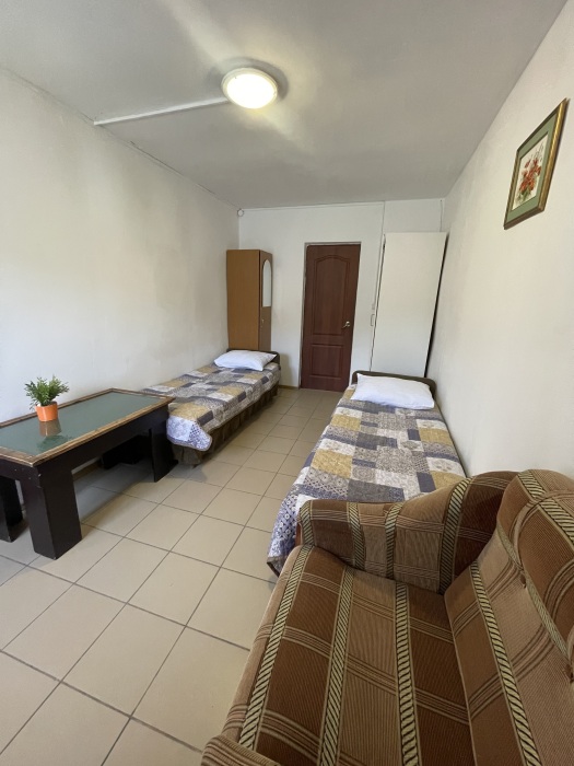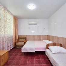 Номер с двумя спальнями и просторной солнечной лоджией с собственной кухней и санузлом. Рассчитан на семью (компанию) из 3-6 человек. Окна спален выходят на север (тихий внутренний двор). В этой небольшой двухкомнатной квартирке есть все необходимое для комфортного отдыха.