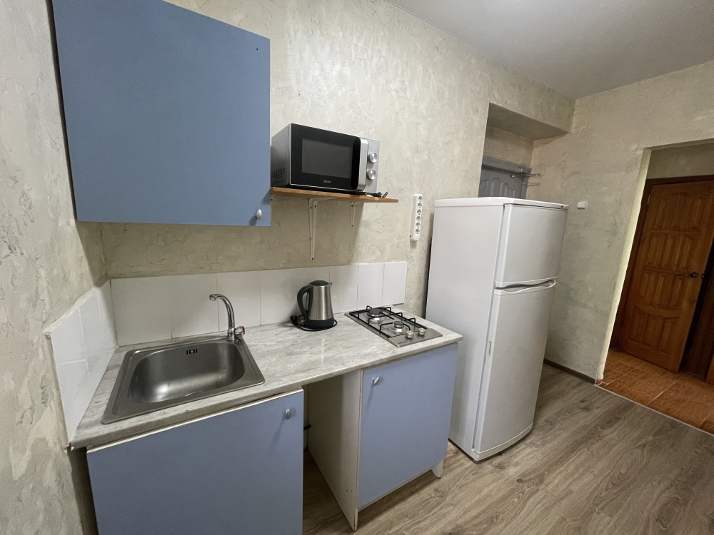 Семейная комфортная студия на 1 этаже. Благодаря зонированию на 36 кв м компактно расположились: кухонная зона со всем необходимым, и зона отдыха. Огромная лиана Киви создает приятную тень в окне