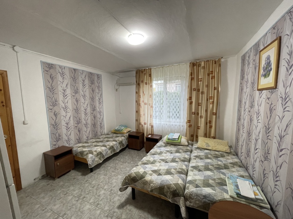 Номера расположены на 1 и 2 этажах дома. Окна выходят на южную сторону, в сад. Есть номера с двуспальной кроватью или тремя односпальными. Wi-Fi, ТV, зона хранения, кондиционер, двухкамерный холодильник, санузел - в каждом номере.