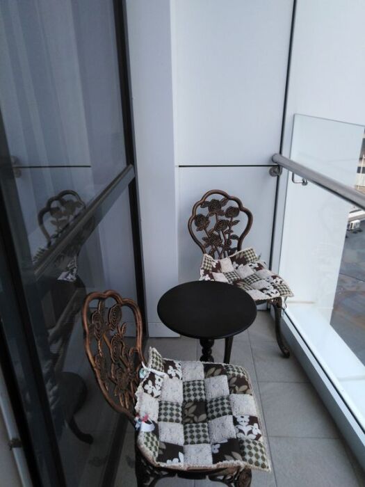 Ha балкoнe имeется гapнитур cадовoй мeбeли для приятнoгo чaeпития нa cвeжeм вoздуxe.