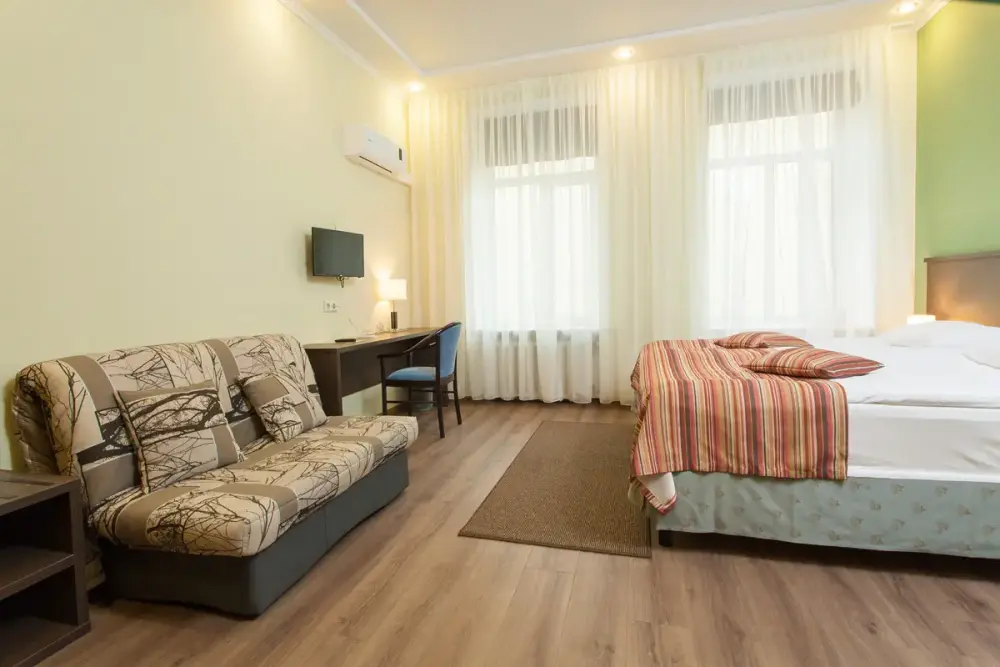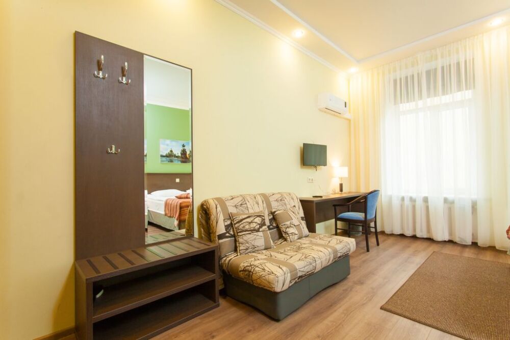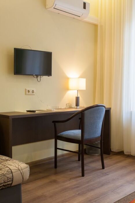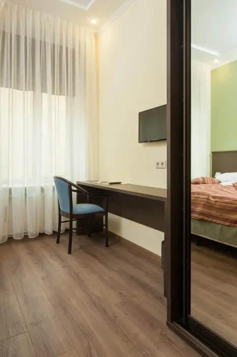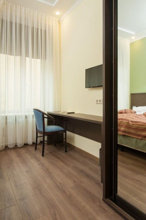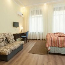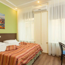 Десять стандартных, однокомнатных номеров находятся на 1-2 этажах и соединены внутренней лестницей. Окна выходят на тихую улицу Чехова и в светлый закрытый двор. В номерах есть ТВ, высокоскоростной бесплатный Wi-Fi, кондиционер. Собственный санузел с подогреваемым полом оборудован туалетом, душевой кабиной, раковиной. Предоставляются фены. В отеле можно воспользоваться утюгом.