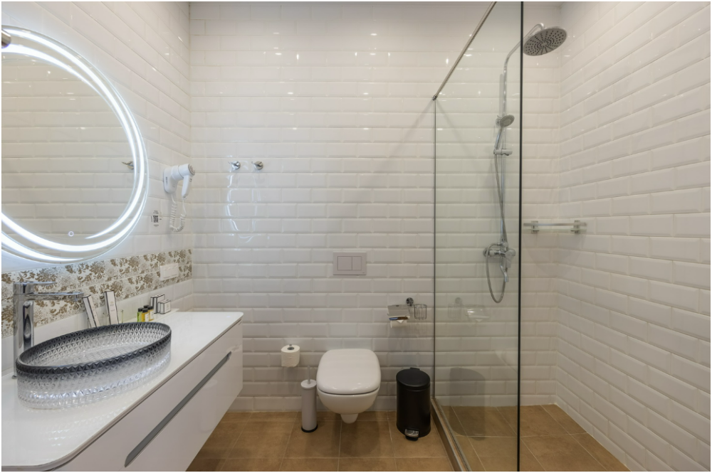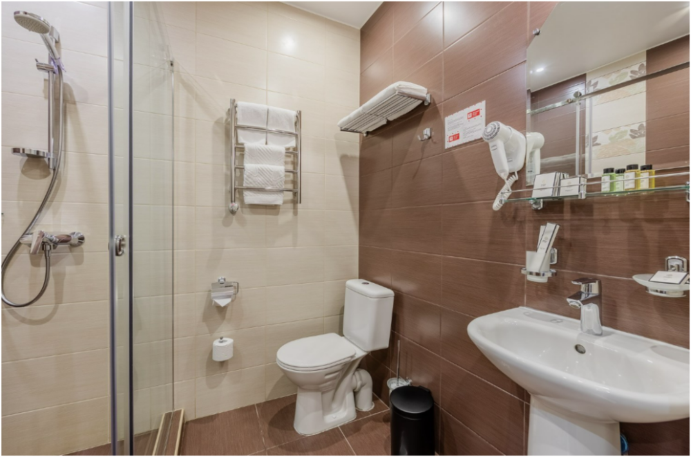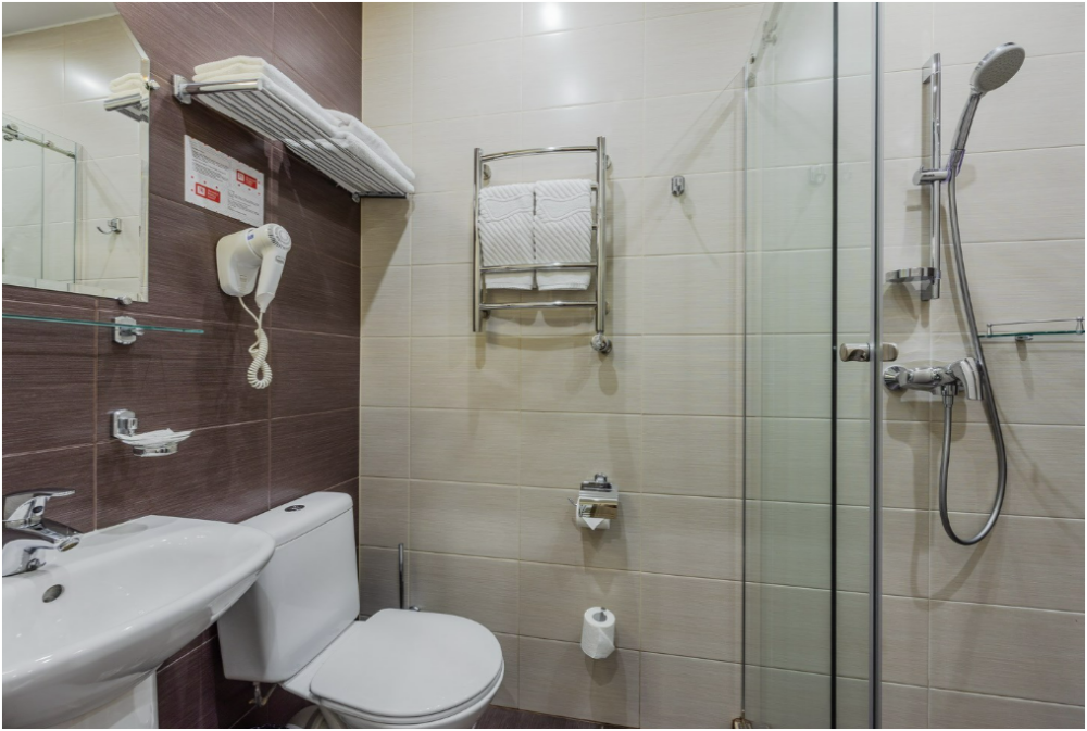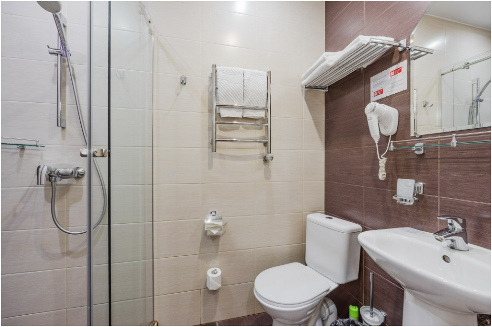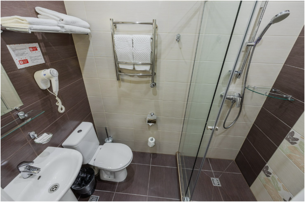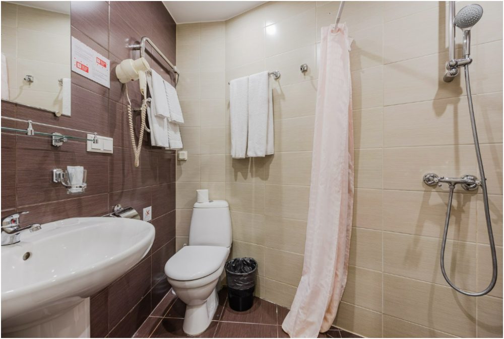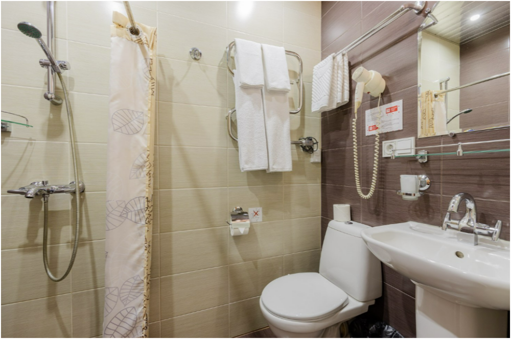 В ванной есть все необходимые принадлежности для Вашего комфорта: фен, душевая кабина или душ со шторкой, туалет, раковина, набор полотенец, полотенцесушитель, косметические средства, тапочки.