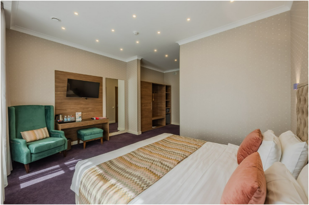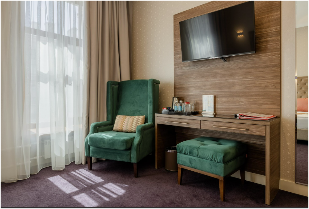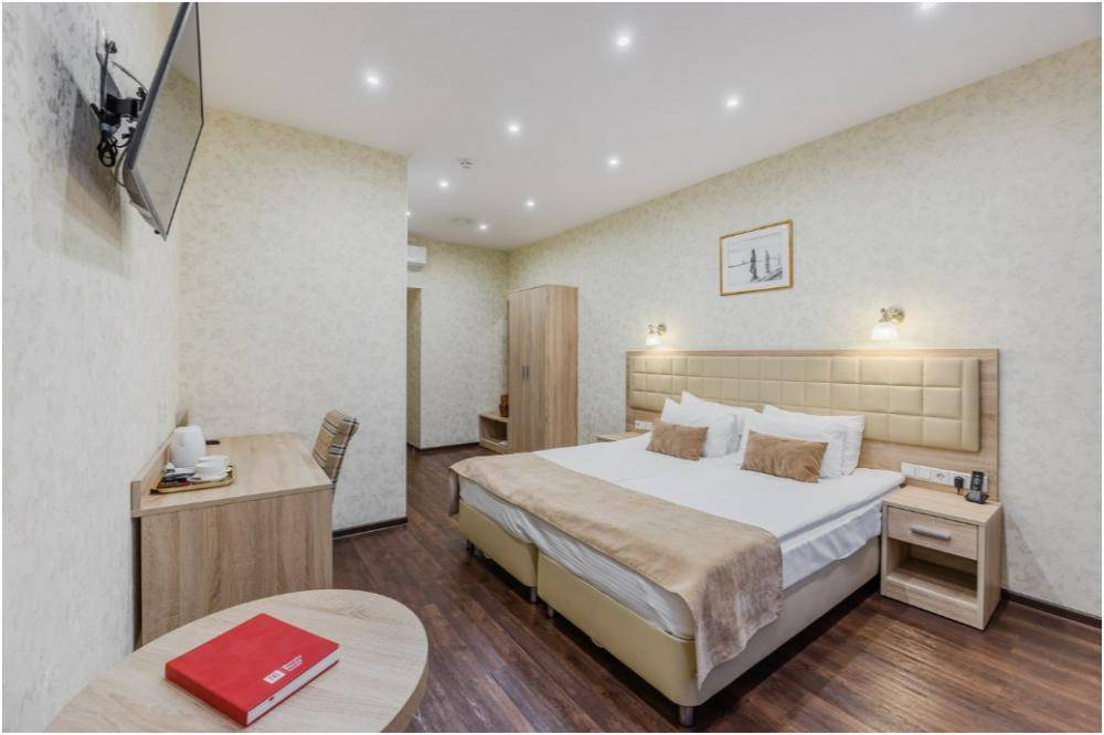 Ваш номер класса Комфорт Плюс будет очень просторным, и это позволит Вам отдохнуть с комфортом после насыщенного дня! Также он подходит для размещения всей семьей или небольшой компанией.