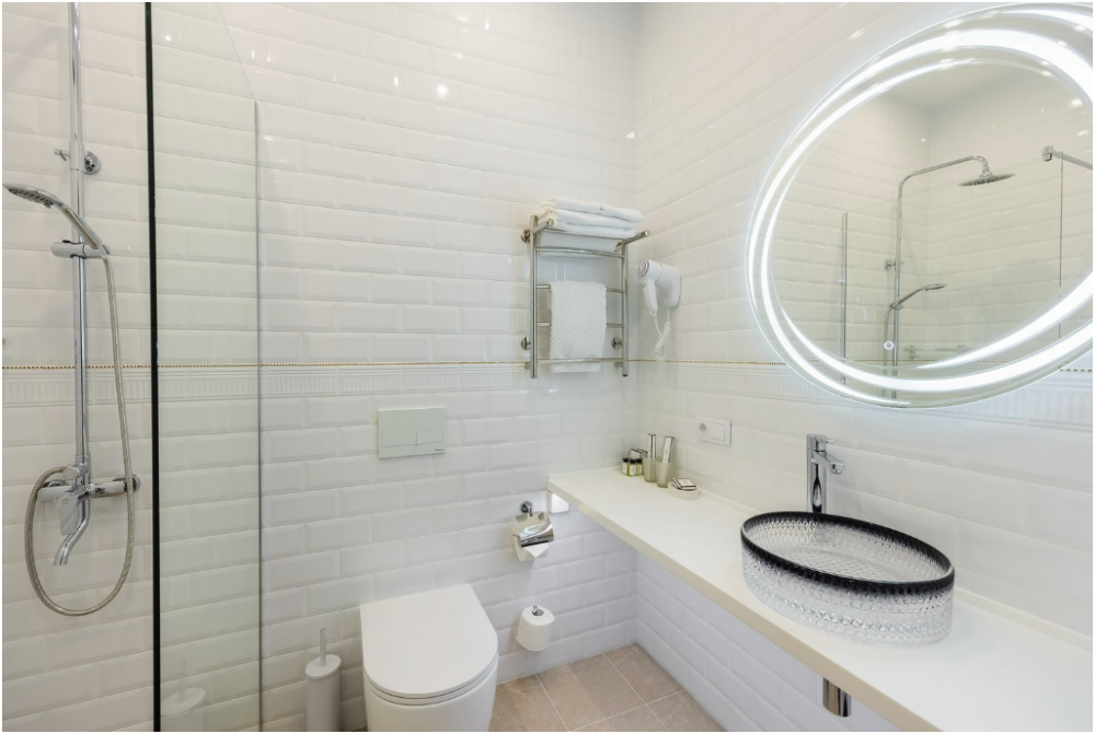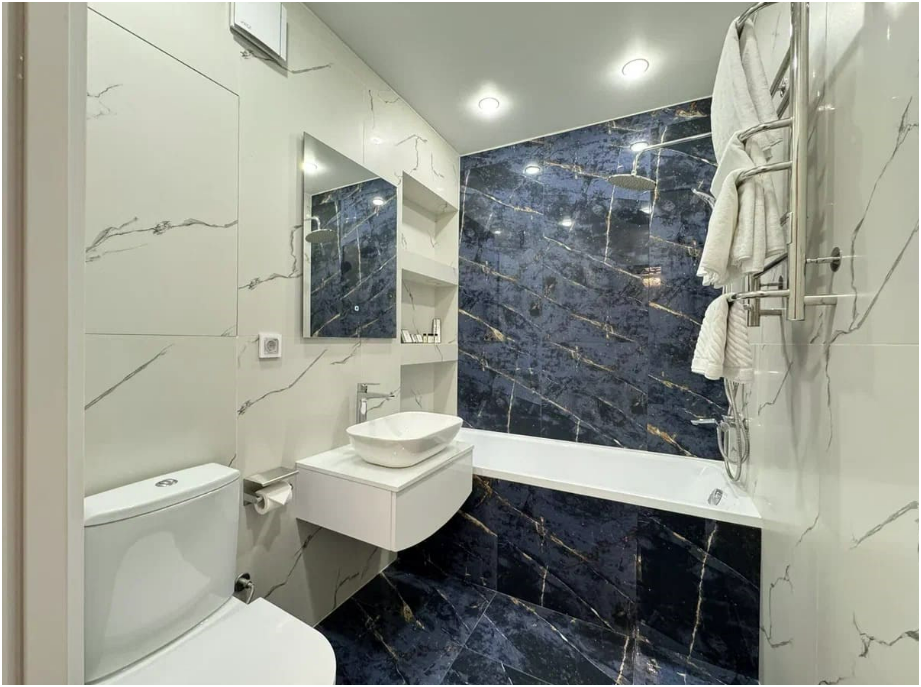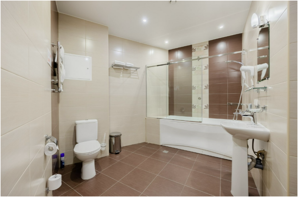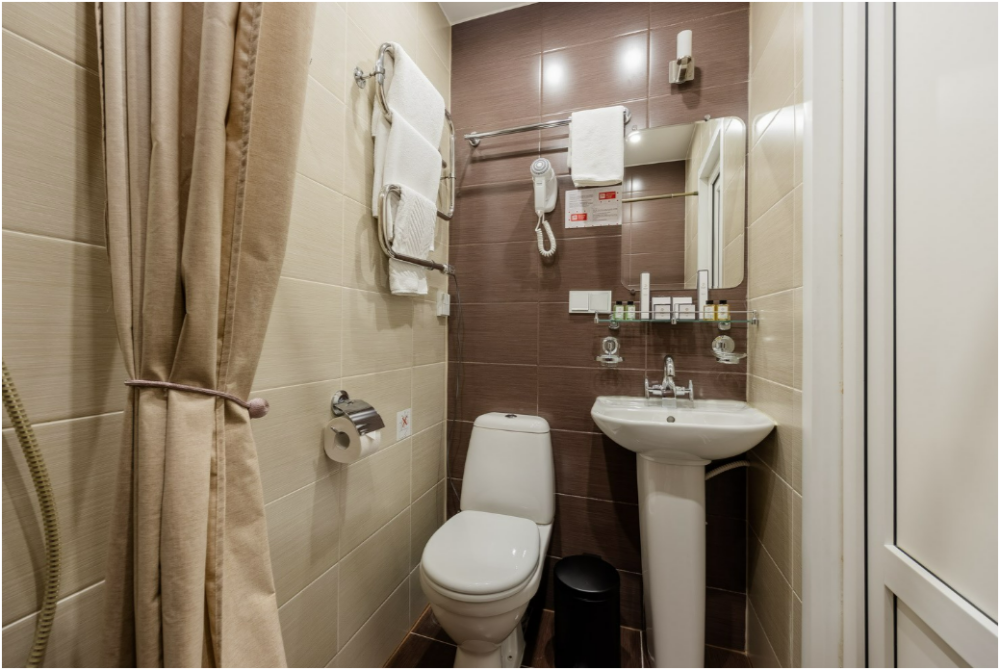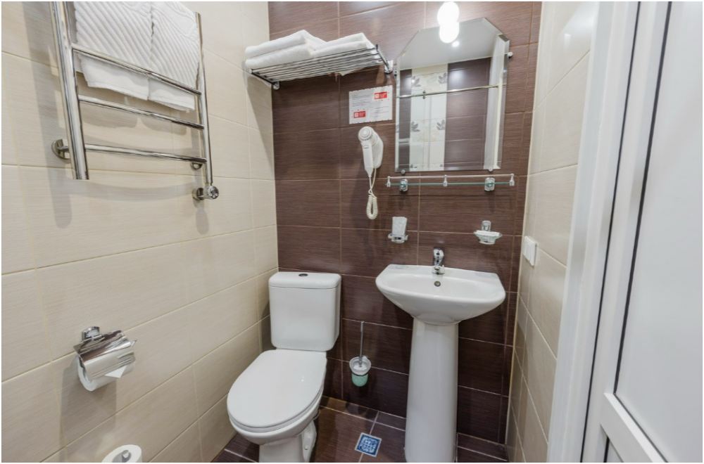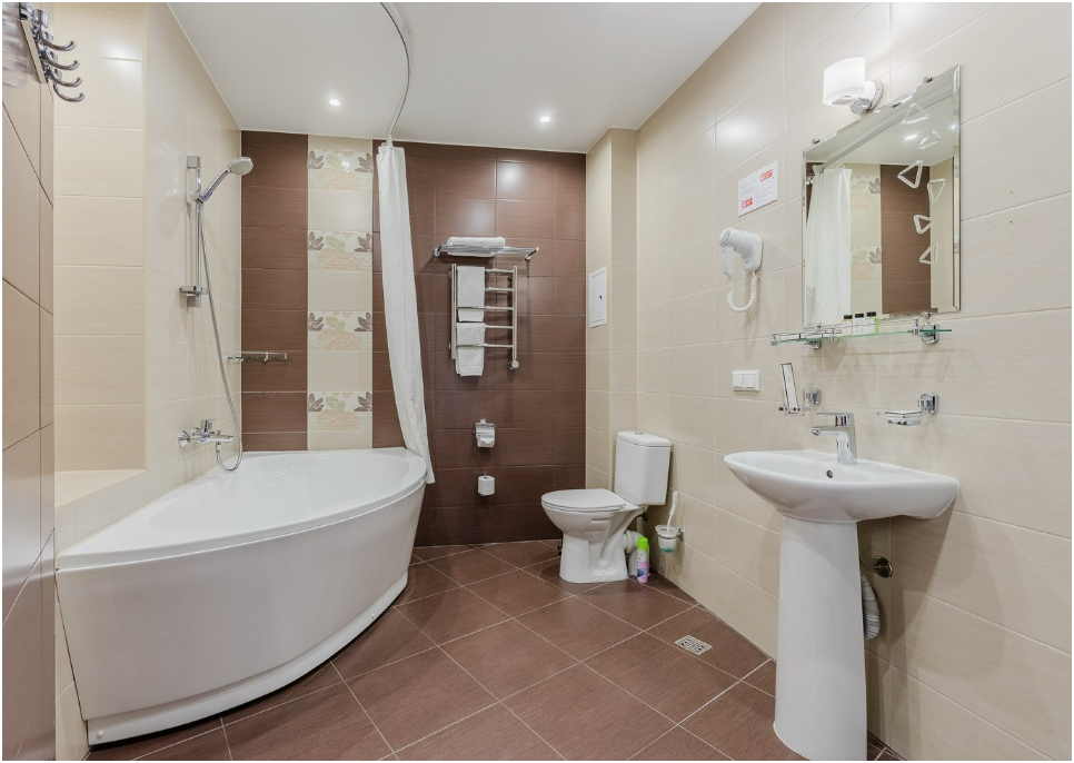 В ванной есть все необходимые принадлежности для Вашего комфорта: фен, ванна или душевая кабина, туалет, раковина, набор полотенец, полотенцесушитель, косметические средства, тапочки, халат.