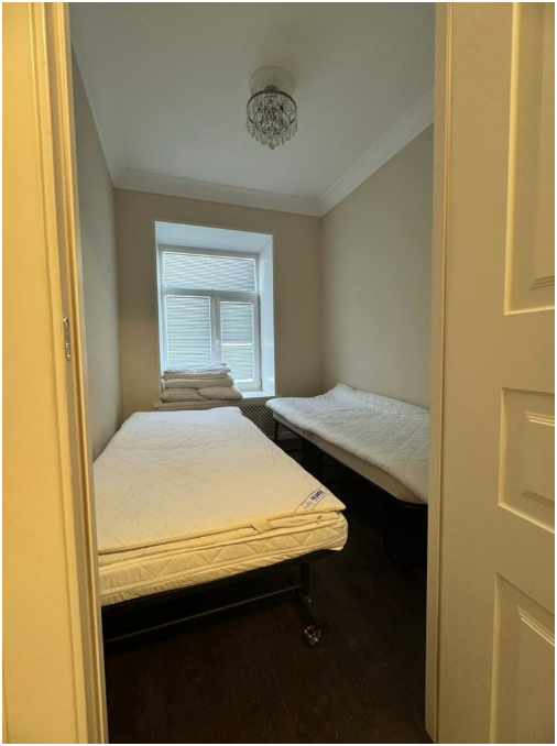 В комнате одна двуспальная кровать или две раздельные кровати. В каждой комнате холодильник, кондиционер, телевизор, тумбочка, стулья, стол, шкаф. В каждой комнате находится ванная комната: ванная, туалет, раковина, фен, банное и лицевое полотенце, полотенцесушитель, косметические средства, тапочки.