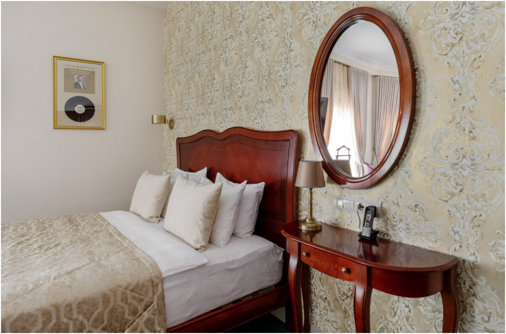 Отель предлагает номера различных категорий. Все номера оснащены кондиционером, телефоном, телевизором, холодильником. Гостям предоставляются туалетные принадлежности, мягкие полотенца, тапочки и фен. На последнем этаже гостиницы есть мансардные номера. Из части номеров открывается вид на Невский проспект.