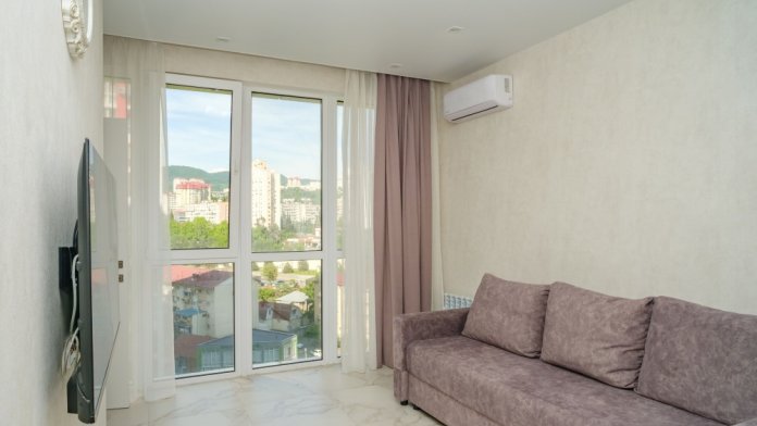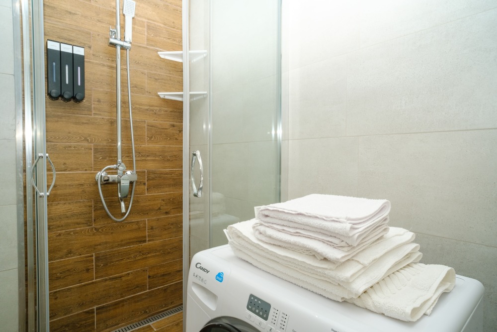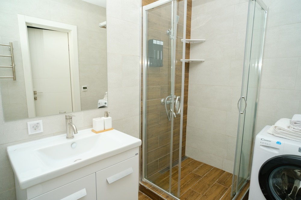 Удобства: бесплатный Wi-Fi, телевизор с бесплатными кинотеатрами и телевидением, кондиционер, тёплый пол, стиральная машина, утюг, фен.