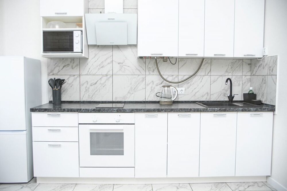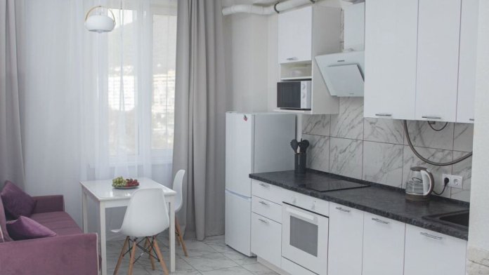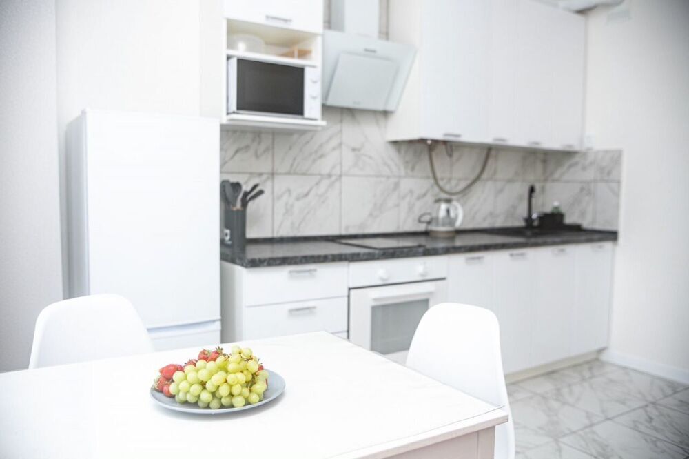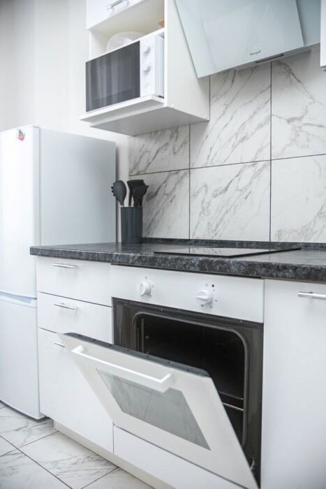 Кухонная зона: полностью оборудована: плита, холодильник, микроволновка, чайник, духовой шкаф и турка. Есть вся необходимая посуда и столовые приборы.