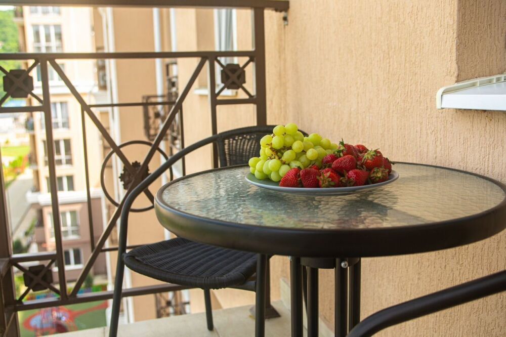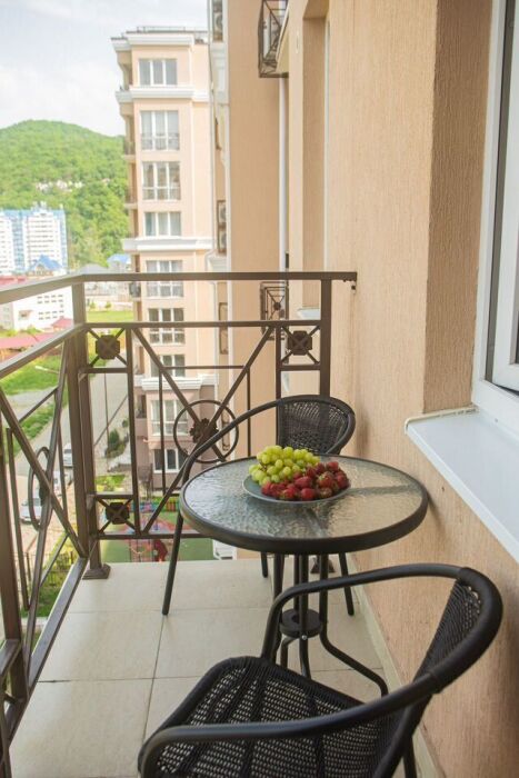 Балкон: вид на горы, оборудован мебелью для отдыха - идеальное место для утреннего кофе.