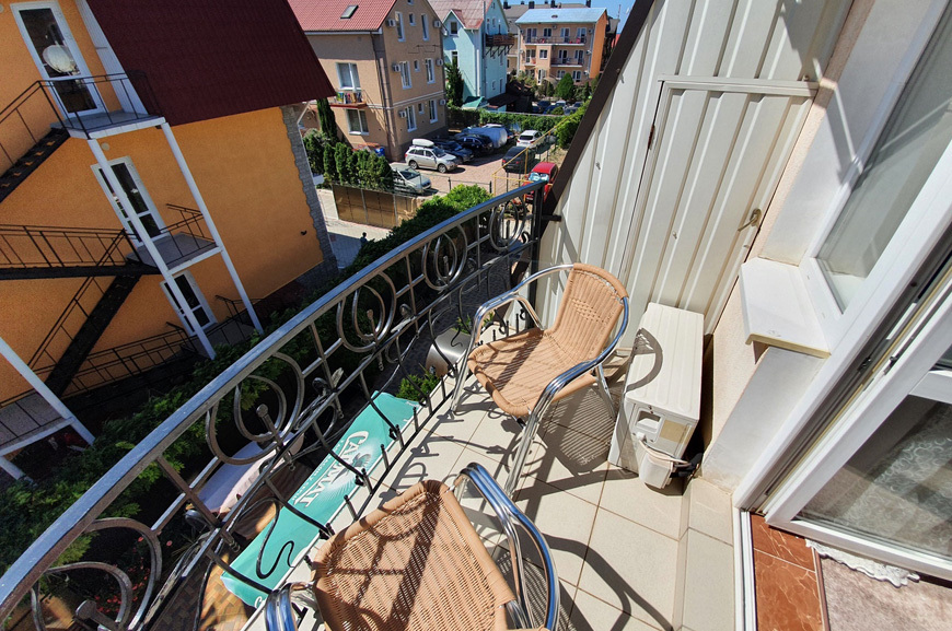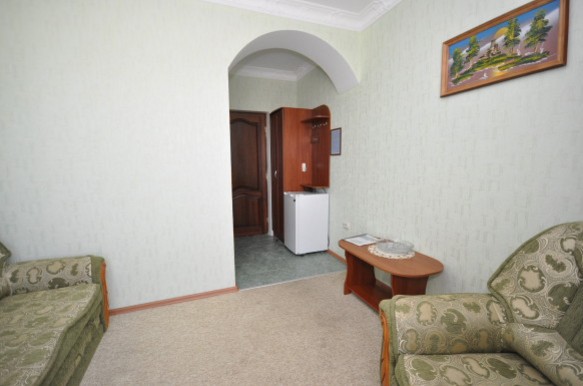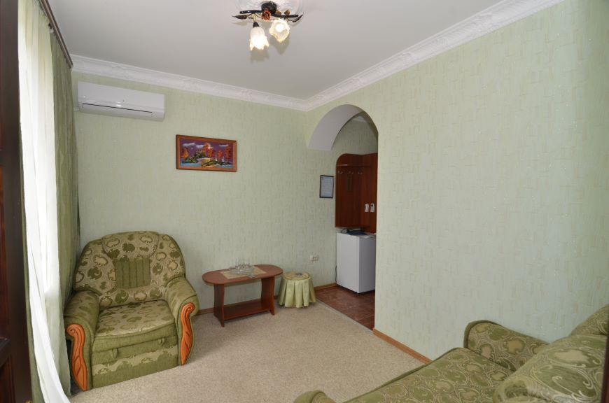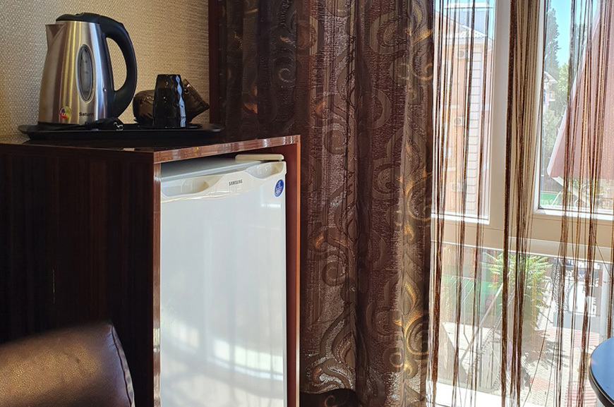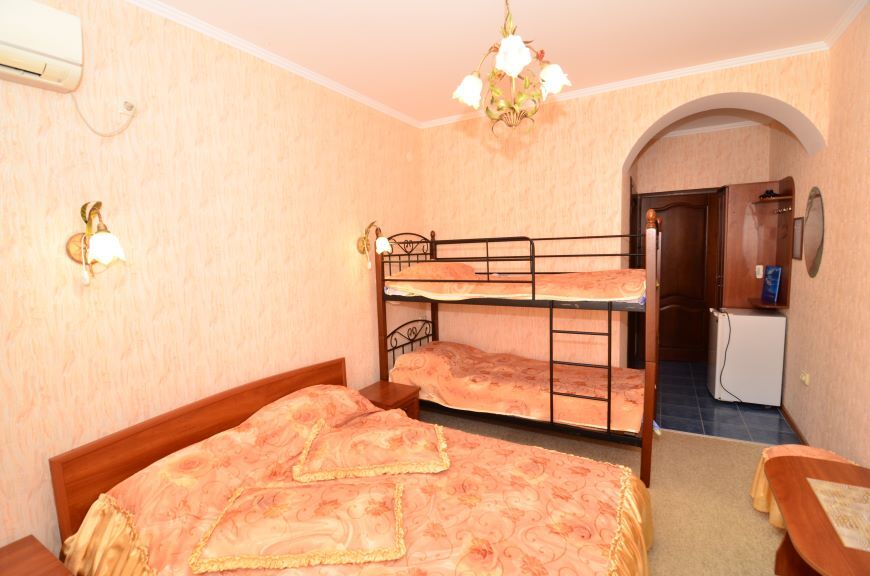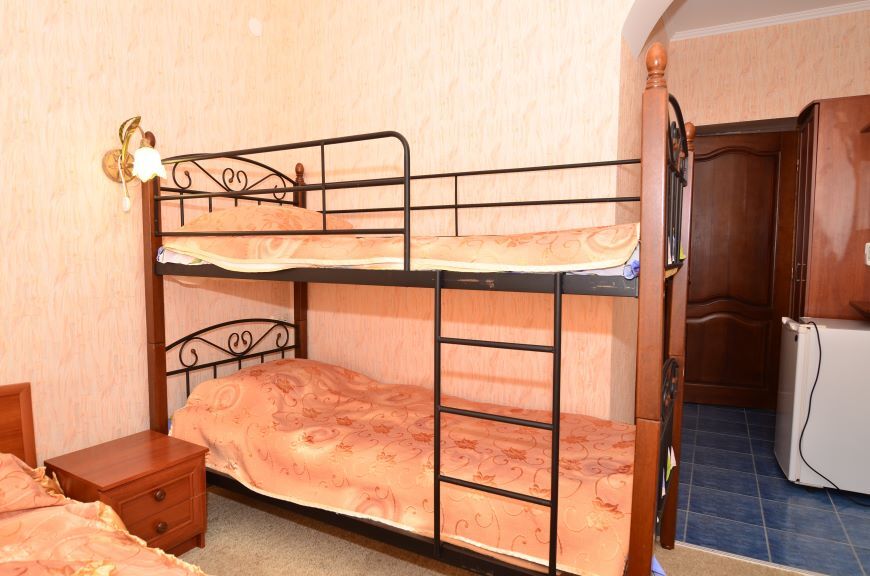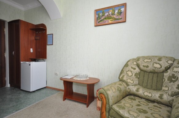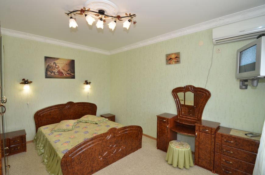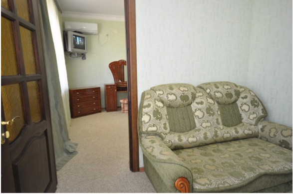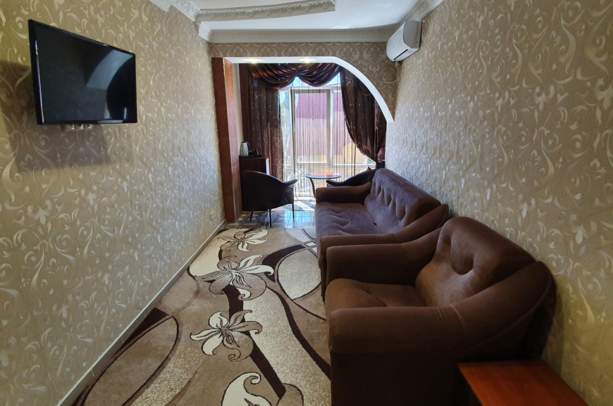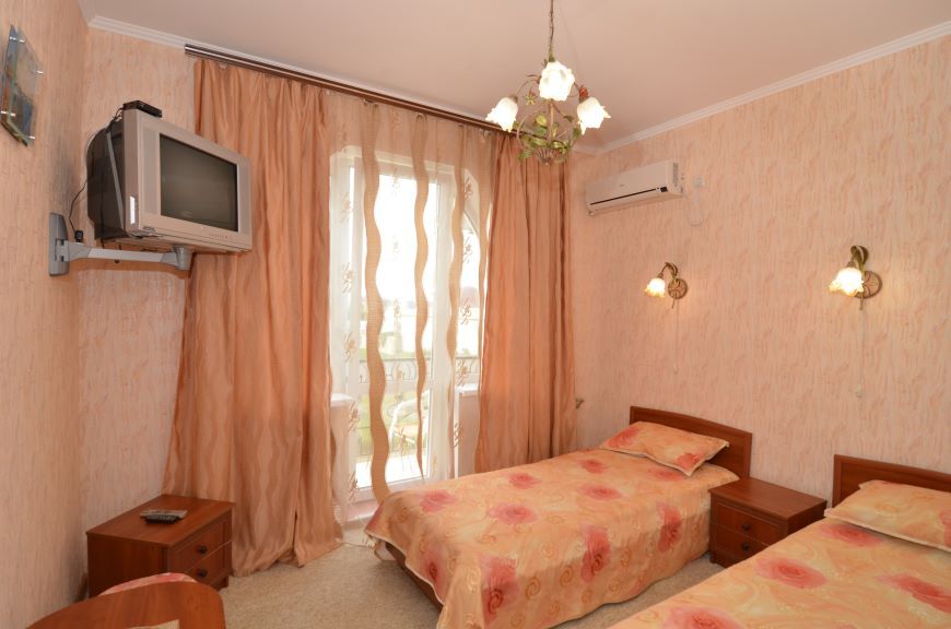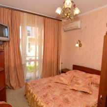 В номере: кровать двуспальная или 2 односпальные, прикроватные тумбочки, мягкое кресло, столик, 2 стула, шкафчик, комплект полотенец, мыльные принадлежности, бойлер, ТВ 95 каналов, смена белья 1 раз в неделю.