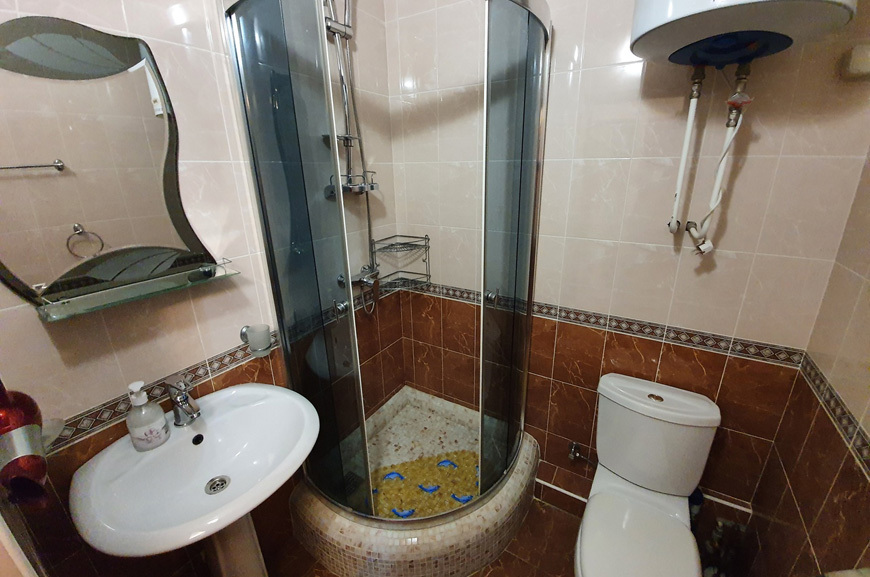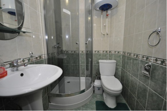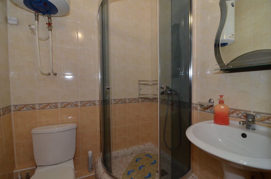Санузел оборудован современной сантехникой с душевой кабиной. Теплую воду обеспечивает бойлер. В каждом номере есть также фен, комплект полотенец, мыльные принадлежности.